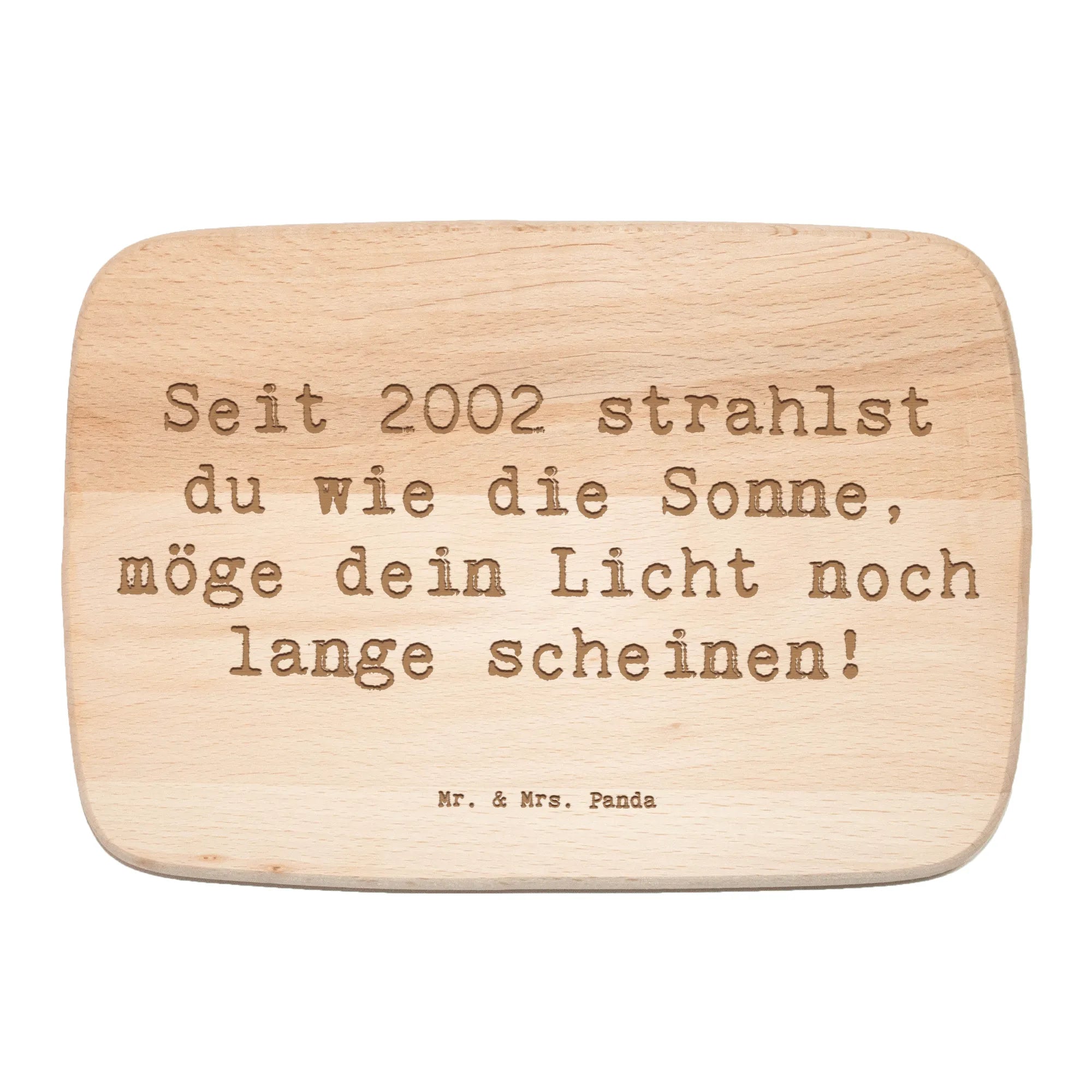 Das einzigartige Frühstücksbrett von Mr. & Mrs. Panda ist mehr als nur ein praktisches Küchenutensil – es ist ein liebevolles Geschenk, das die Herzen aller Geburtstagskinder höher schlagen lässt! Mit dem süßen Motiv "2002 Geburtstag" und dem liebevollen Slogan "Seit 2002 strahlst du wie die Sonne, möge dein Licht noch lange scheinen!" zaubert es jedem Frühstückstisch ein Lächeln ins Gesicht.