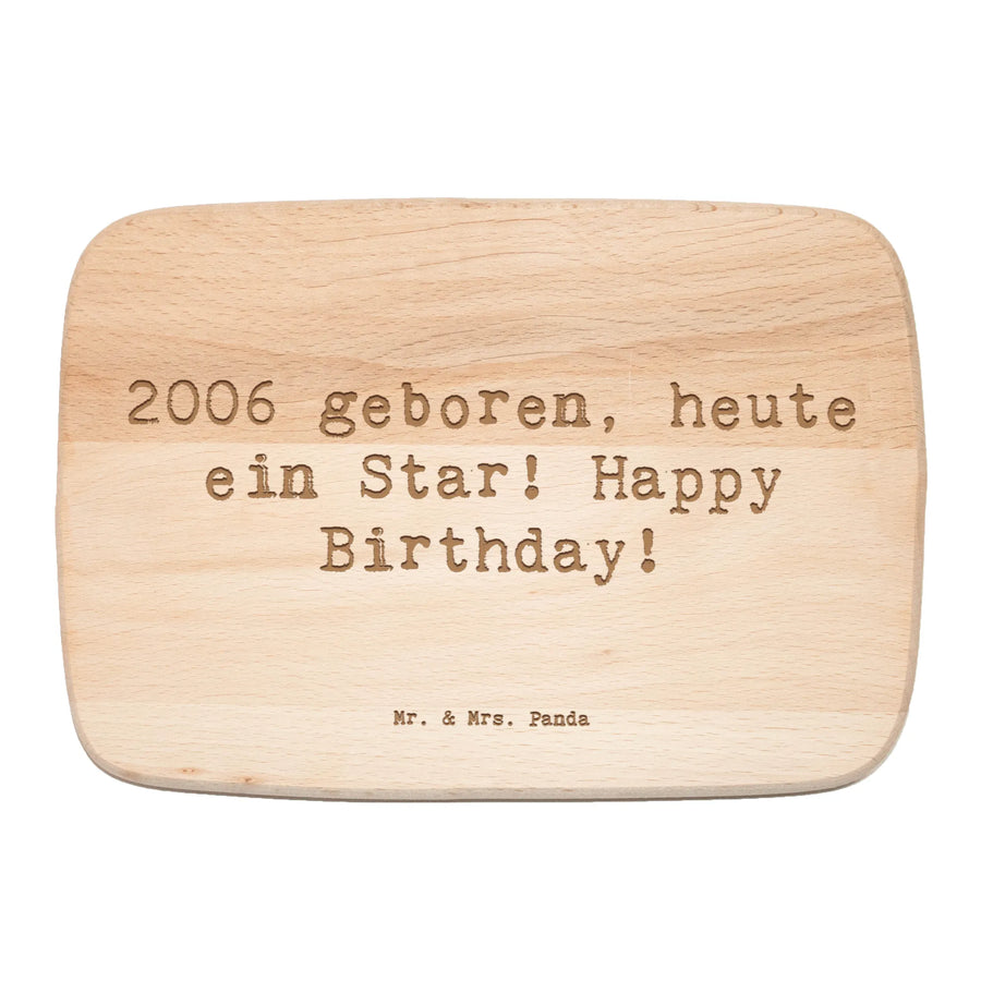 Das Frühstücksbrett "2006 geboren, heute ein Star! Happy Birthday!" von Mr. & Mrs. Panda ist das ideale Geschenk für alle, die im Jahr 2006 das Licht der Welt erblickt haben. Dieses einzigartige und edle Frühstücksbrettchen aus robustem Birkenholz wurde mit viel Liebe und einem besonderen Spruch graviert, der jedem Frühstück oder Snack einen Hauch von Feierlichkeit verleiht.