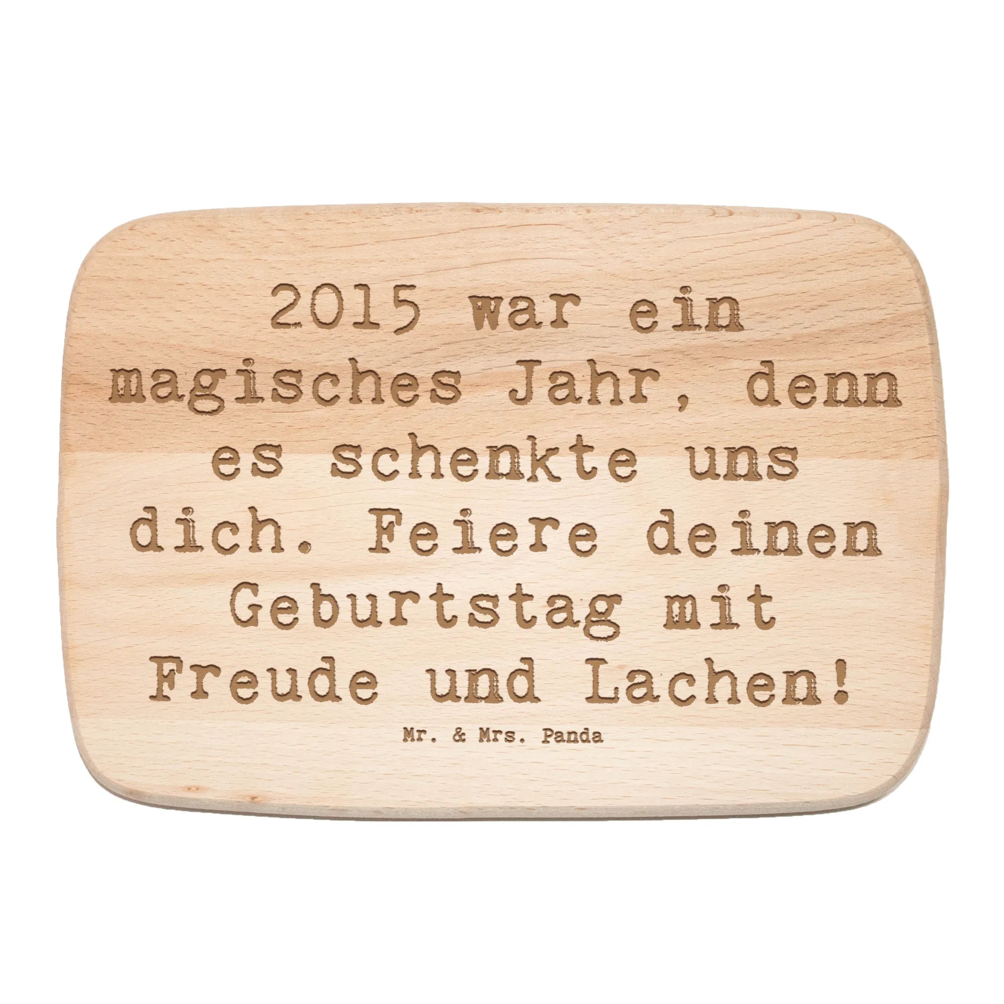 Das Frühstücksbrett 2015 Geburtstag aus der besonderen Kollektion "Geburtstag Geburtsjahr" von Mr. & Mrs. Panda ist das perfekte Geschenk für alle, die einen besonderen Menschen feiern möchten! Ob für die kleine Tochter, den besten Freund oder ein Familienmitglied – dieses einzigartige Frühstücksbrett wird mit einem liebevollen Slogan verziert, der Herzen höher schlagen lässt: "2015 war ein magisches Jahr, denn es schenkte uns dich. Feiere deinen Geburtstag mit Freude und Lachen!". Mit einer Größe von 130 mm x 230 mm bietet das robuste Birkenholzbrett genug Platz für ein köstliches Frühstück oder die Präsentation feiner Snacks. Die langlebige Lasergravur sorgt dafür, dass der Spruch auch nach vielen Jahren noch strahlend schön ist.