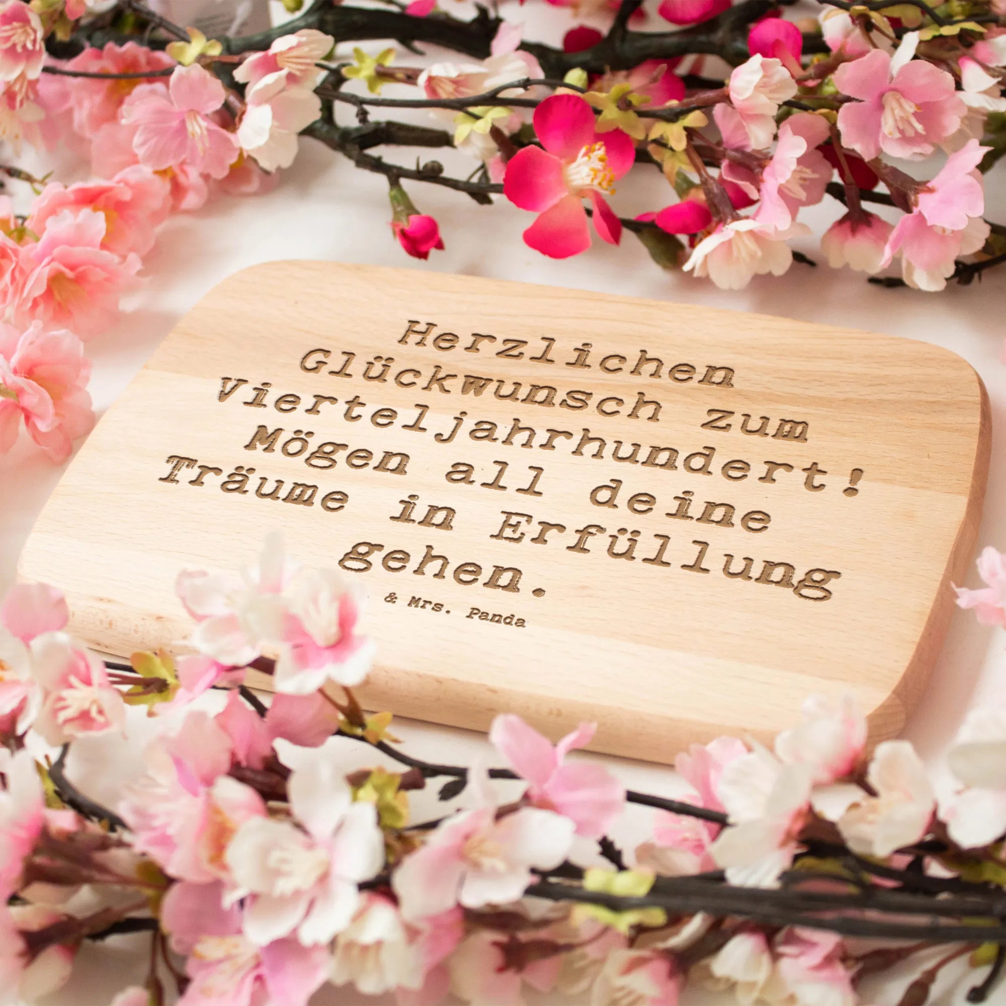 Entdecke das wunderbare Frühstücksbrett von Mr. & Mrs. Panda, das perfekt für den 25. Geburtstag ist! Dieses edle Holzbrett ist nicht nur ein praktischer Begleiter für dein Frühstück, sondern auch ein liebevolles Geschenk für deine Lieben, die diesen besonderen Anlass feiern. Mit dem Slogan "Herzlichen Glückwunsch zum Vierteljahrhundert! Mögen all deine Träume in Erfüllung gehen." zeigt das Brett, wie sehr du die Person schätzt.
