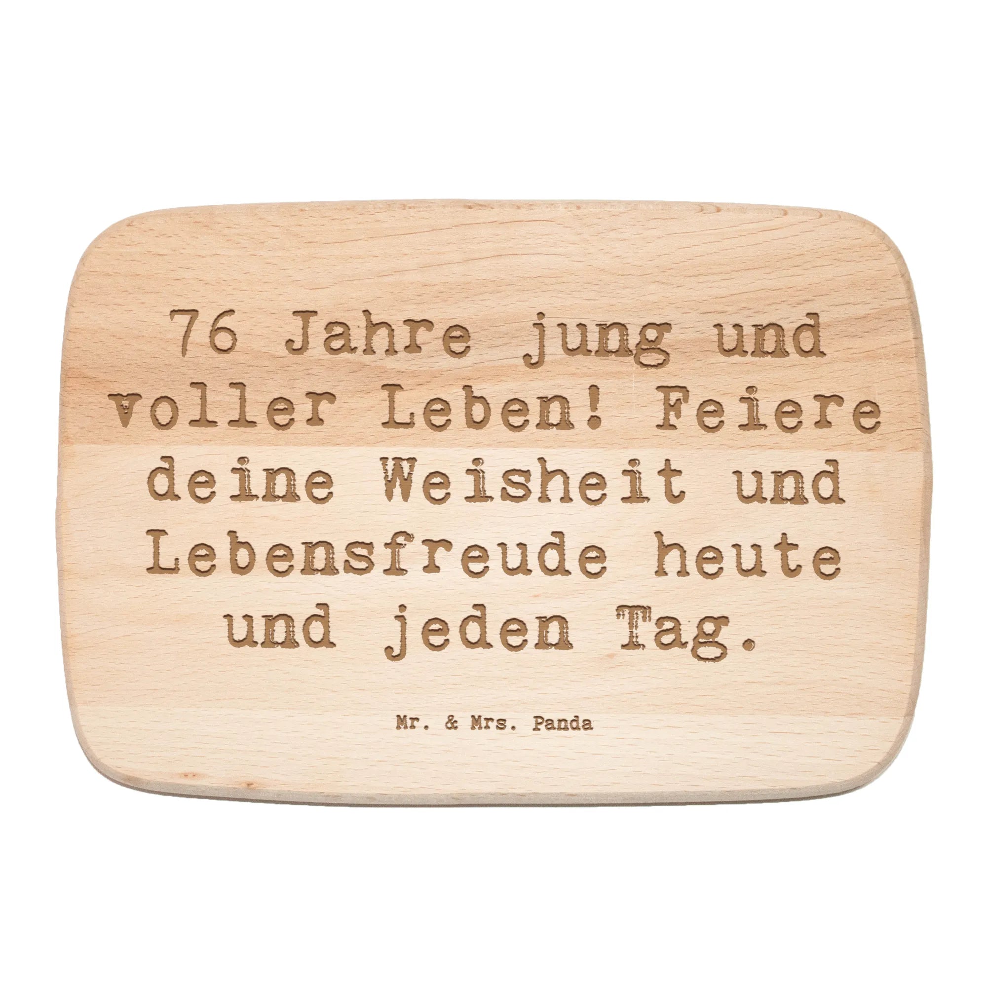 Das wunderschöne Frühstücksbrett "76 Jahre jung und voller Leben!" von Mr. & Mrs. Panda ist die perfekte Geschenkidee für all diejenigen, die ihren 76. Geburtstag gebührend feiern möchten.