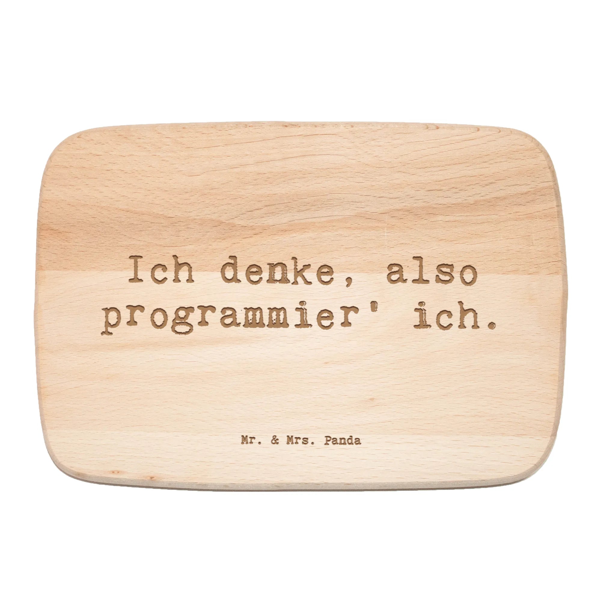 Das Frühstücksbrett für Softwareentwickler von Mr. & Mrs. Panda ist das perfekte Geschenk für alle IT-Entwickler und Programmierer! Ob zum Berufsstart, zum Jobwechsel oder einfach als kleine Aufmerksamkeit zwischendurch – mit diesem einzigartigen Holzschneidebrett kannst Du jedem eine Freude machen. Mit einem liebevoll gestalteten Motiv, das das Herz eines jeden Technikers höher schlagen lässt, kombiniert dieses Frühstücksbrett praktische Funktionen mit einem humorvollen Spruch: "Ich denke, also programmier' ich."