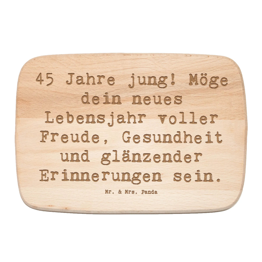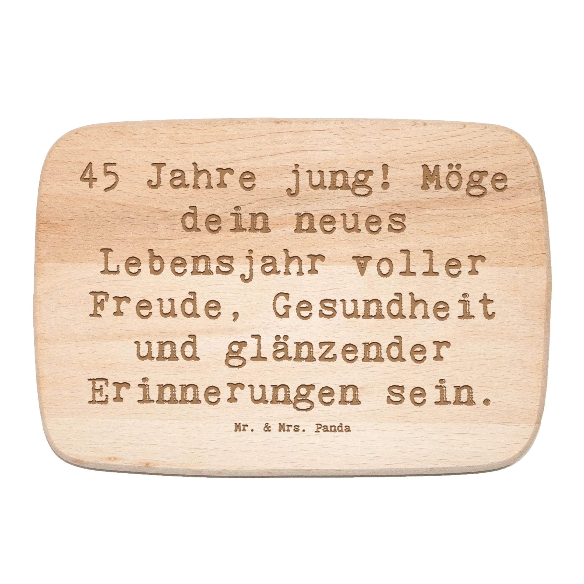 Suchst du nach dem perfekten Geschenk für einen ganz besonderen Menschen, der 45 Jahre jung wird? Dann ist das liebevoll gestaltete Frühstücksbrett von Mr. & Mrs. Panda genau das richtige! Mit dem süßen Motiv "45 Jahre jung! Möge dein neues Lebensjahr voller Freude, Gesundheit und glänzender Erinnerungen sein" zauberst du jedem Geburtstagskind ein Lächeln ins Gesicht.