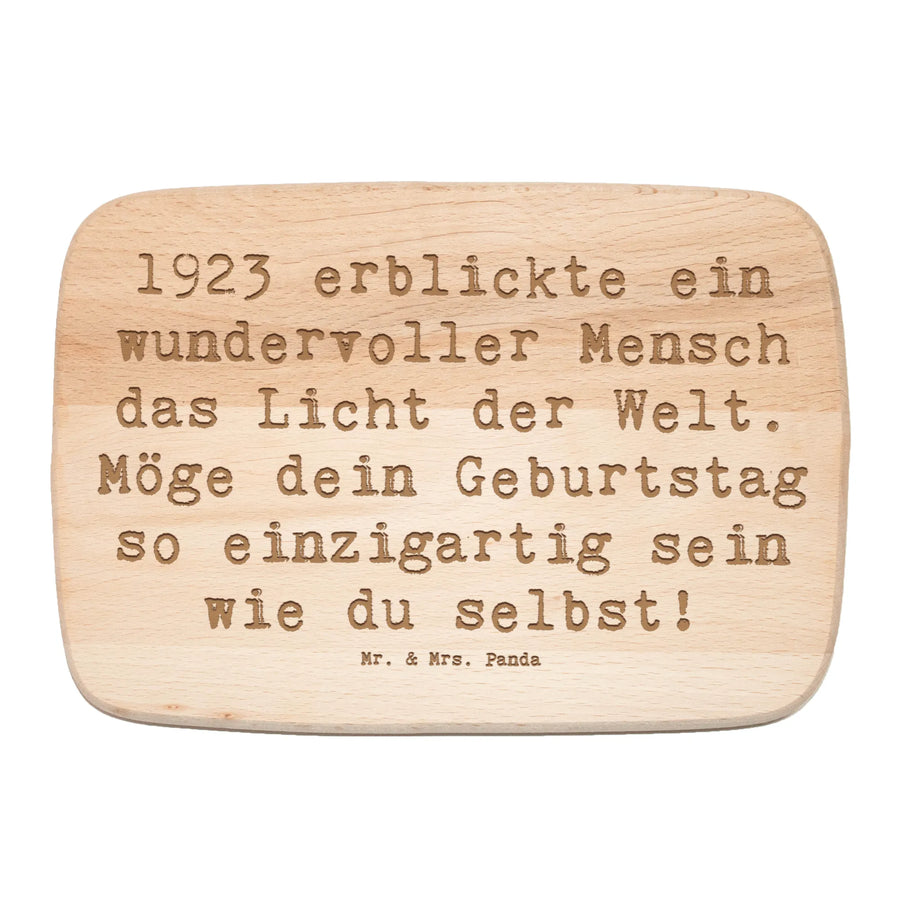 Der darauf gravierte Spruch "1923 erblickte ein wundervoller Mensch das Licht der Welt. Möge dein Geburtstag so einzigartig sein wie du selbst!" zaubert jedem ein Lächeln ins Gesicht und macht das Brett zu einem fröhlichen Highlight auf jedem Tisch.