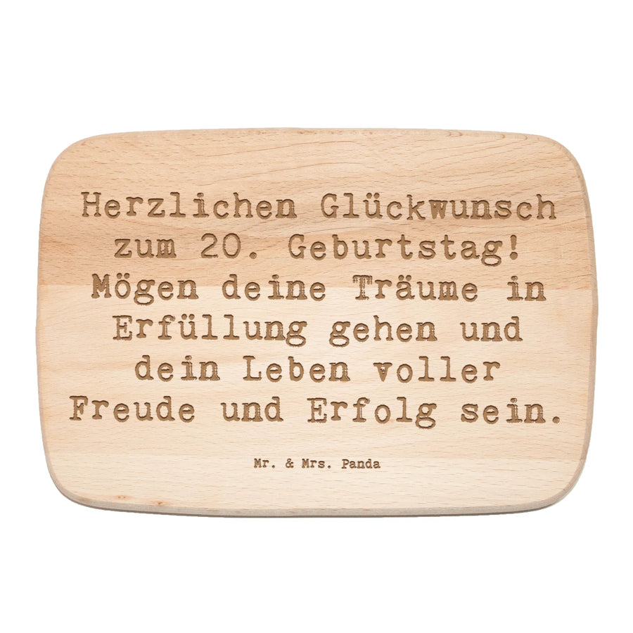 Das Frühstücksbrett "Herzlichen Glückwunsch zum 20. Geburtstag! Mögen deine Träume in Erfüllung gehen und dein Leben voller Freude und Erfolg sein." von Mr. & Mrs. Panda ist das perfekte Geschenk zu einem ganz besonderen Anlass – dem 20. Geburtstag! Mit seinem charmanten Design und der liebevollen Lasergravur wird dieses Küchenbrett nicht nur zum Blickfang in jeder Küche, sondern eignet sich auch hervorragend zur Präsentation von leckeren Snacks oder als Frühstücksbrett.