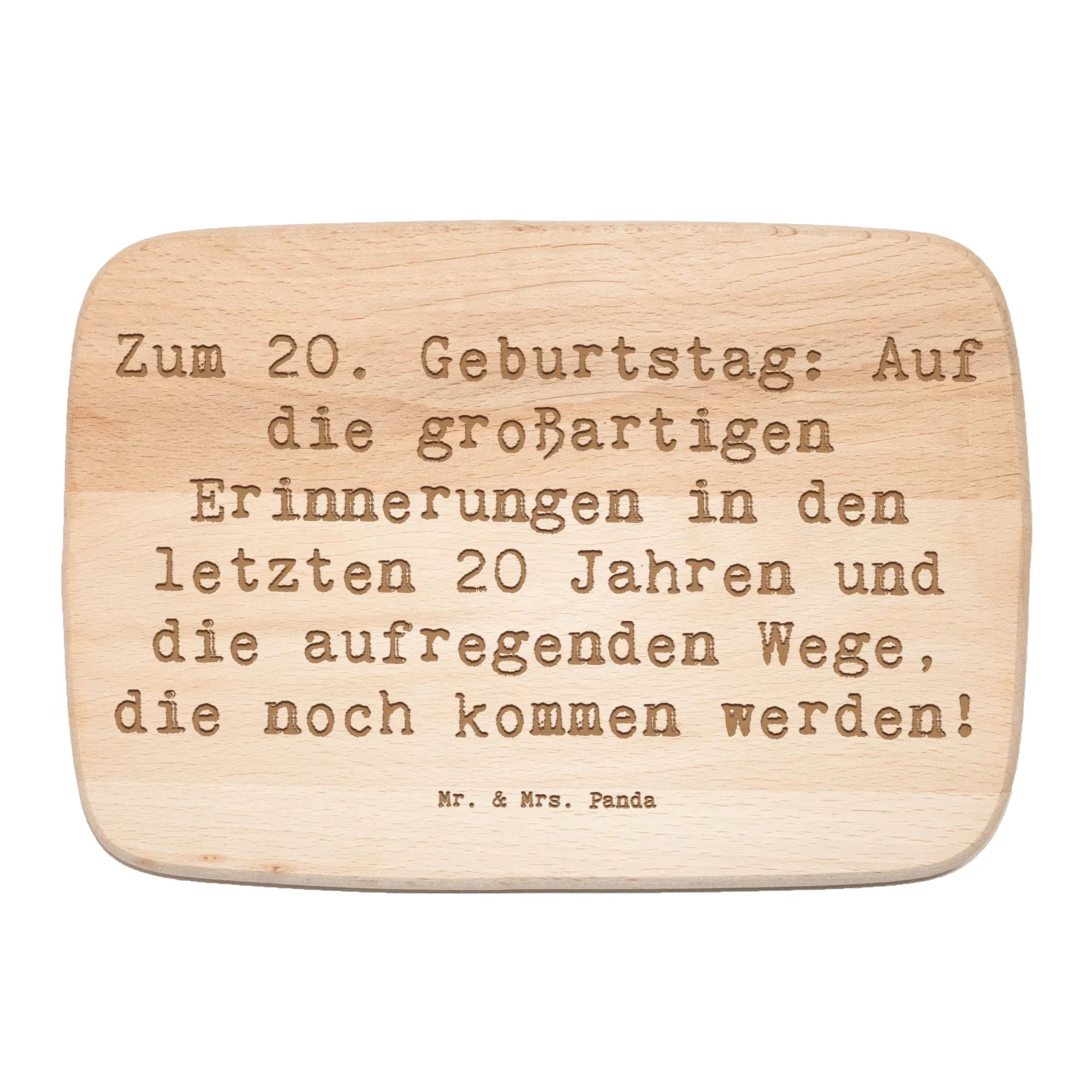 Das Frühstücksbrett von Mr. & Mrs. Panda ist nicht nur ein praktisches Küchenaccessoire, sondern auch ein wunderbares Geschenk zum 20. Geburtstag. Dieses besondere Brett aus robustem Birkenholz wird mit viel Liebe zum Detail gefertigt und ist mit einem süßen Motiv und dem Spruch 'Zum 20. Geburtstag: Auf die großartigen Erinnerungen in den letzten 20 Jahren und die aufregenden Wege, die noch kommen werden!' graviert.