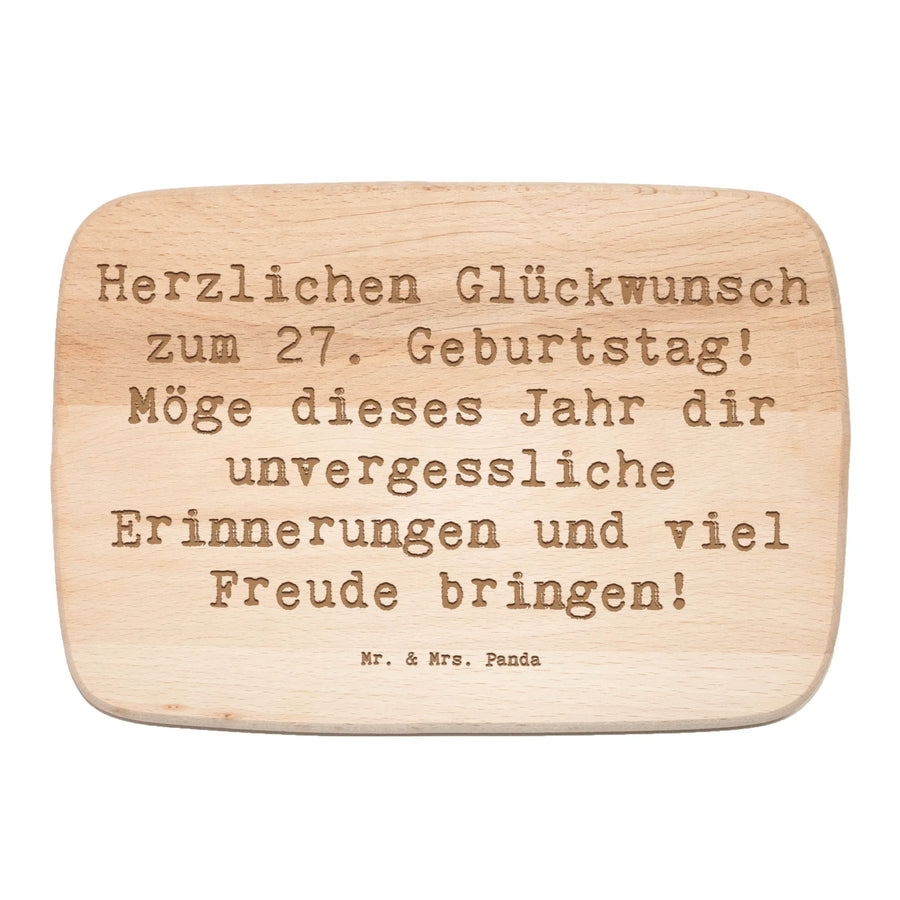 Das besondere Frühstücksbrett von Mr. & Mrs. Panda ist das perfekte Geschenk zum 27. Geburtstag! Mit dem liebevollen Spruch "Herzlichen Glückwunsch zum 27. Geburtstag! Möge dieses Jahr dir unvergessliche Erinnerungen und viel Freude bringen!" wird jeder Frühstückstisch zum Fest.
