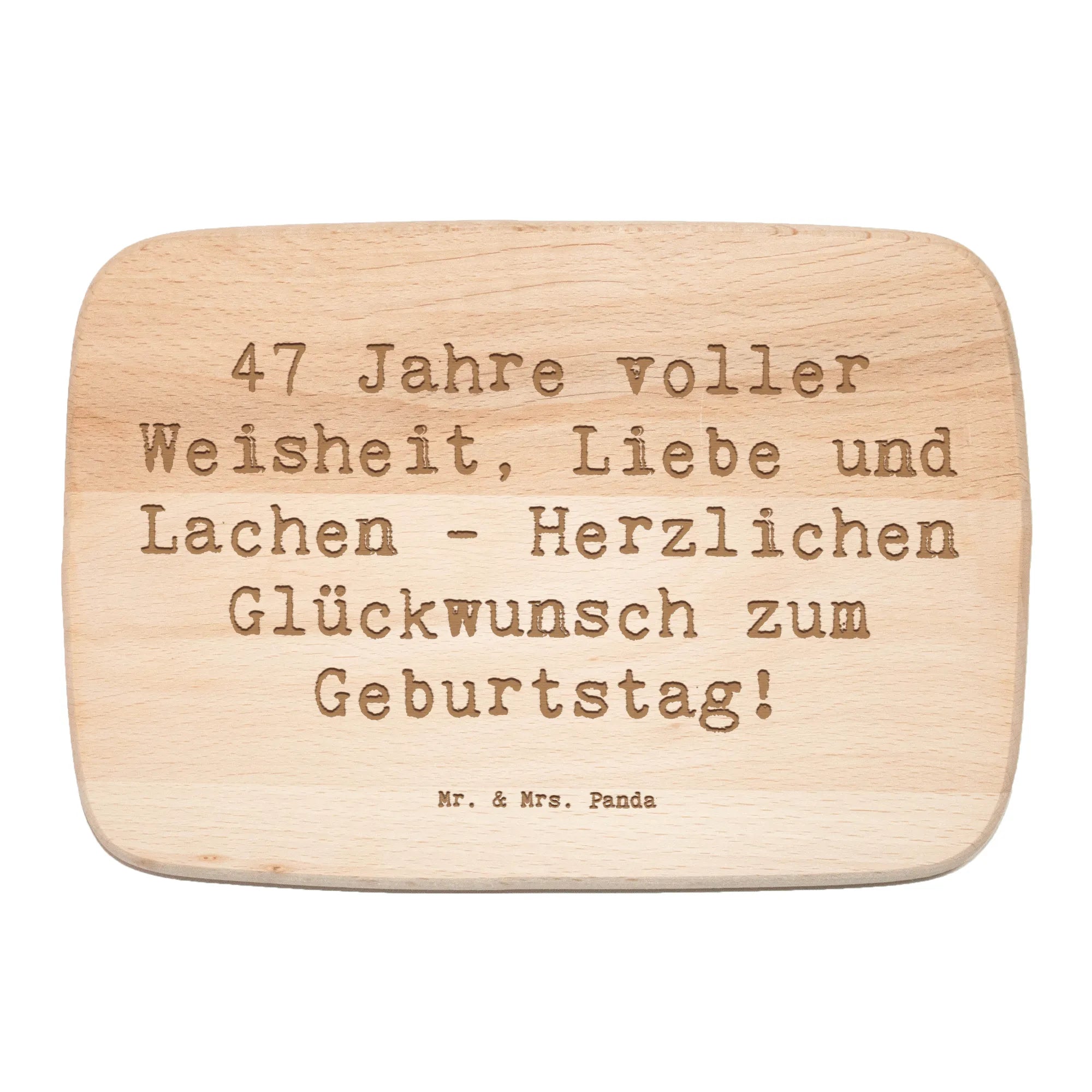 Das Frühstücksbrettchen "47 Jahre voller Weisheit, Liebe und Lachen" von Mr. & Mrs. Panda ist das perfekte Geschenk für alle, die ihren 47. Geburtstag feiern. Mit einer liebevollen Lasergravur kommt dieses süße Holzbrettchen nicht nur als nützliches Küchenutensil, sondern auch als dekoratives Stück in jede Küche.