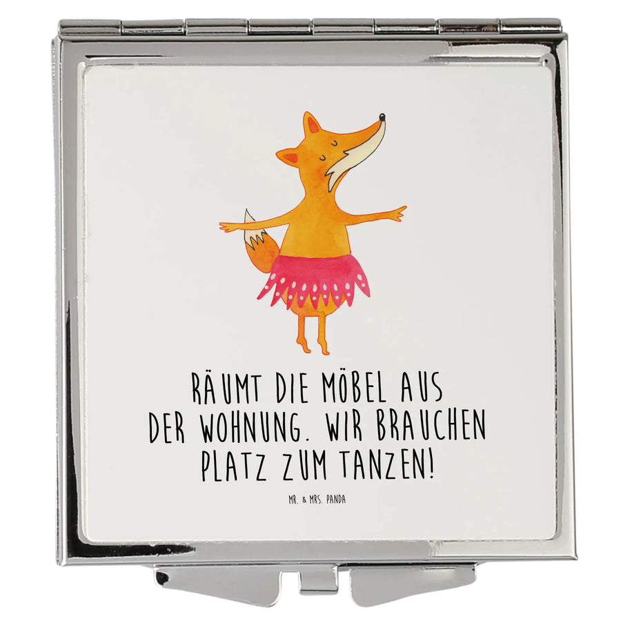 Handtaschenspiegel quadratisch Fuchs Ballerina - mit Spruch - Weiß