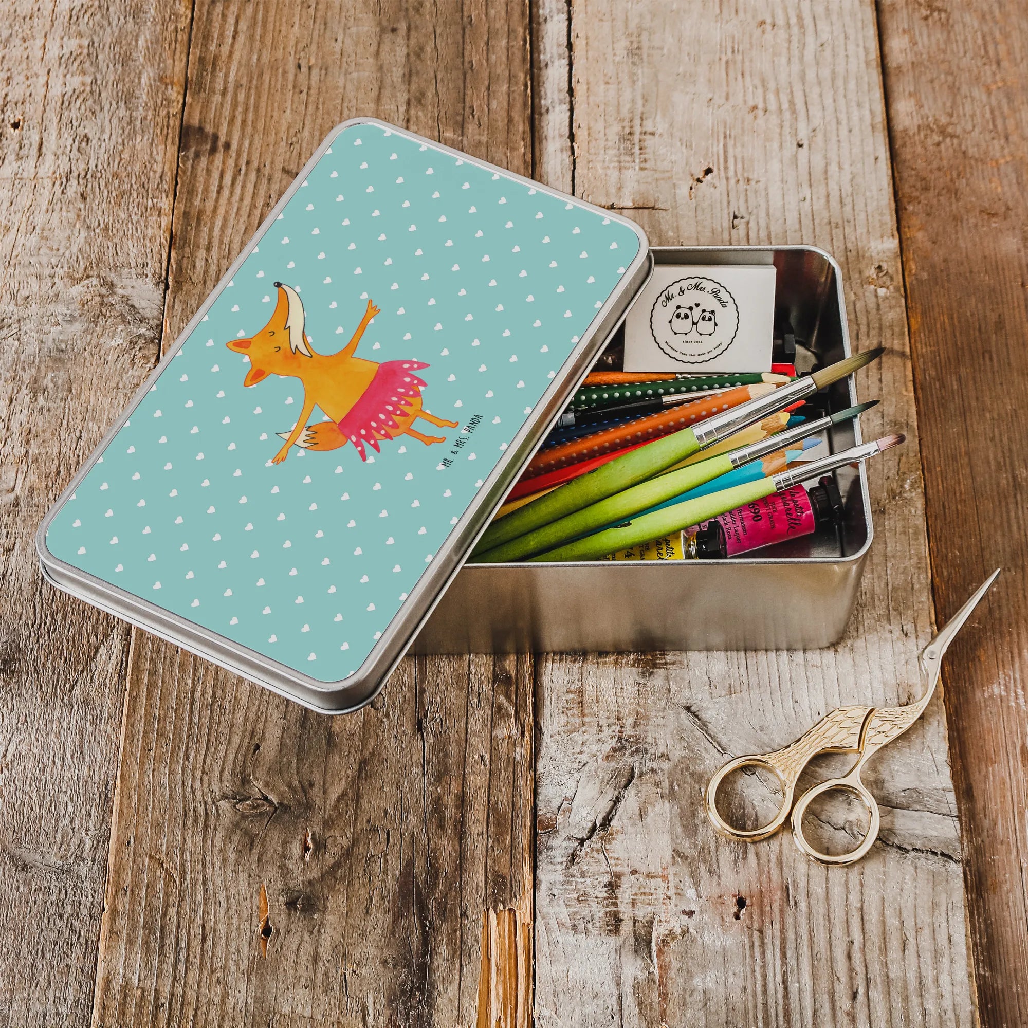 Die wunderschöne rechteckige Metalldose mit dem bezaubernden Motiv 'Fuchs Ballerina' ist ein echtes Must-Have für alle, die das Besondere lieben! Mit einem einzigartigen Design, das mit viel Liebe von Mr. & Mrs. Panda entworfen wurde, bringt diese Dose das Gefühl von Leichtigkeit in Deinen Alltag. Der fröhliche Fuchs, der elegant in einer Ballerina-Pose tanzt, zaubert nicht nur ein Lächeln auf Dein Gesicht, sondern eignet sich auch hervorragend als praktischer Begleiter im Alltag.