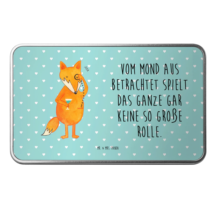 Mit dem Spruch "Vom Mond aus betrachtet spielt das Ganze gar keine so große Rolle" entführt dich die Dose in eine Gedankenwelt voller Leichtigkeit und Humor. Lass diesen Spruch dein täglicher Begleiter sein und genieße die kleinen Momente des Lebens! Kreiert für alle, die eine Vorliebe für skurrile, aber gleichzeitig liebevolle Designs haben, ist die Metalldose "Fuchs Lord" der perfekte Begleiter für jeden Anlass.