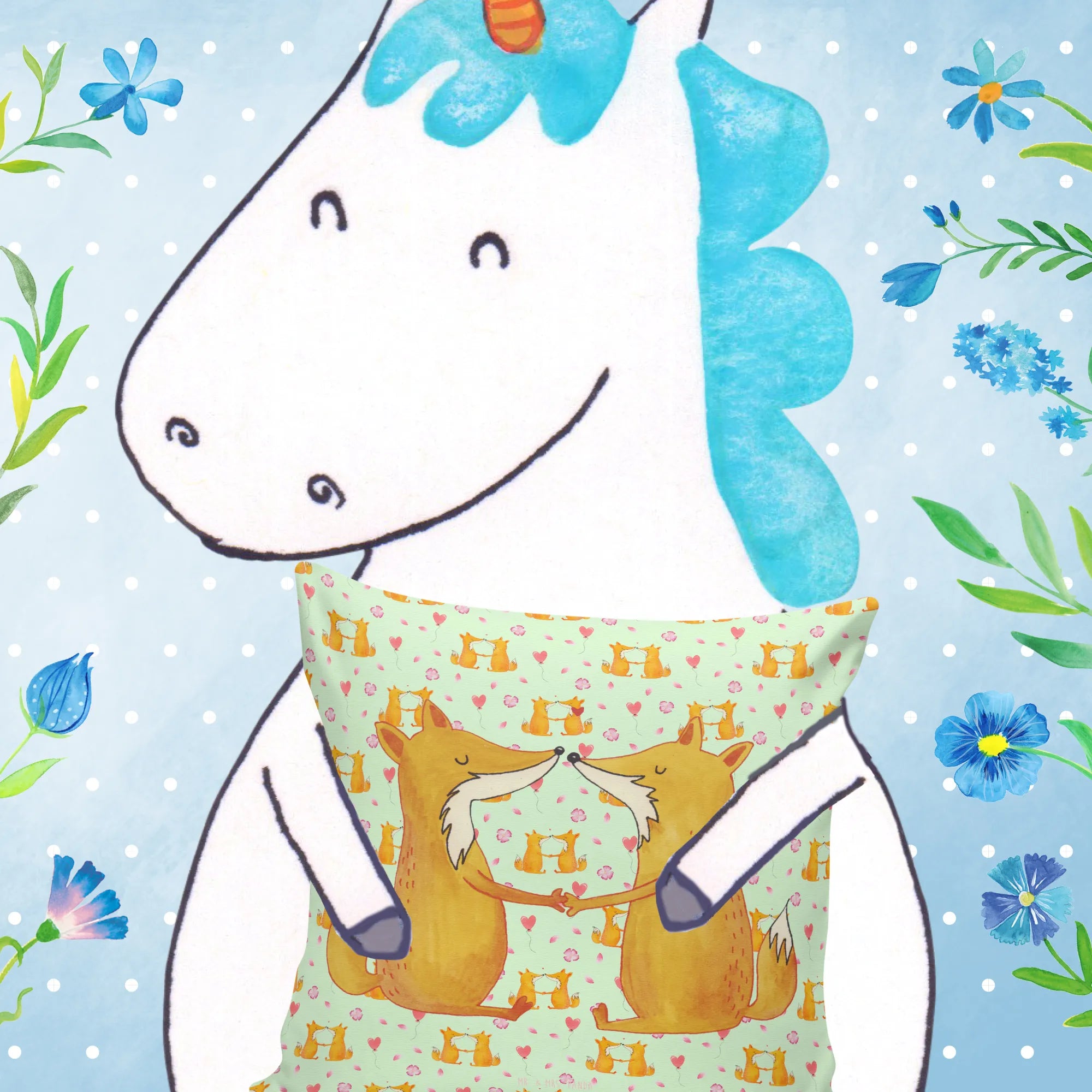 Wenn Du nach einem perfekten Geschenk suchst, dann ist das 40x40 Kissen "Füchse Liebe" von Mr. & Mrs. Panda genau das Richtige für Dich! Das Kissen ist nicht nur ein wunderbarer Blickfang in jedem Raum, sondern bringt auch ein warmes, romantisches Gefühl in Dein Zuhause.