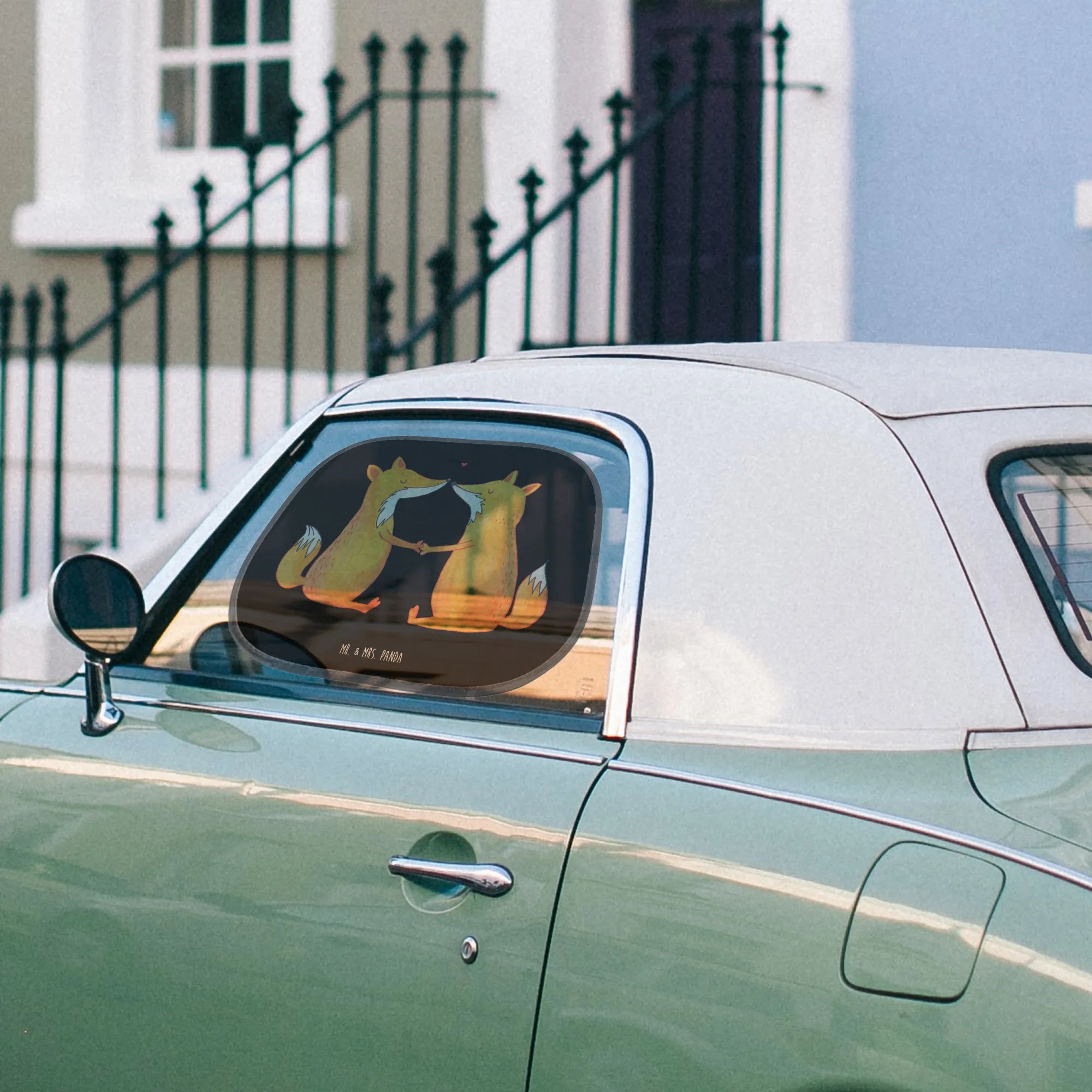 Suchst du das perfekte Geschenk für frischgebackene Eltern oder für all diejenigen, die ihre kleinen Schätze stets vor der Sonne schützen möchten? Der Auto Sonnenschutz Füchse Liebe von Mr. & Mrs. Panda ist die ideale Lösung! Mit einem bezaubernden Motiv von zwei niedlichen Füchsen, die Hand in Hand sitzen, strahlt dieser Sonnenschutz nicht nur Wärme, sondern auch eine unendliche Verbundenheit aus. Es ist, als würde die Liebe sofort in dein Auto einziehen und jeder Fahrt einen Hauch von Romantik verleihen.
