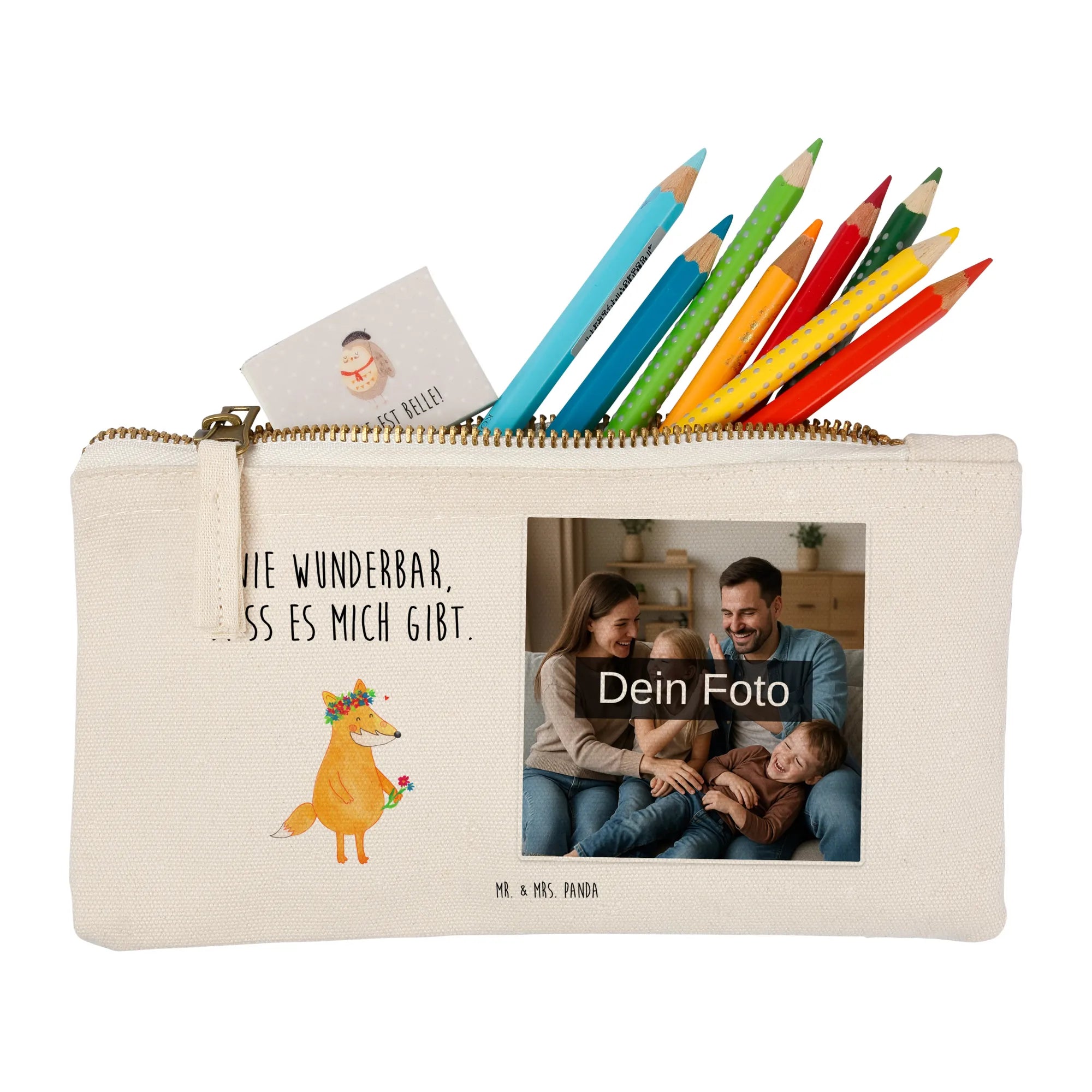 Personalisierte Foto Schminktasche Fuchs Blumen - Größe S Klein