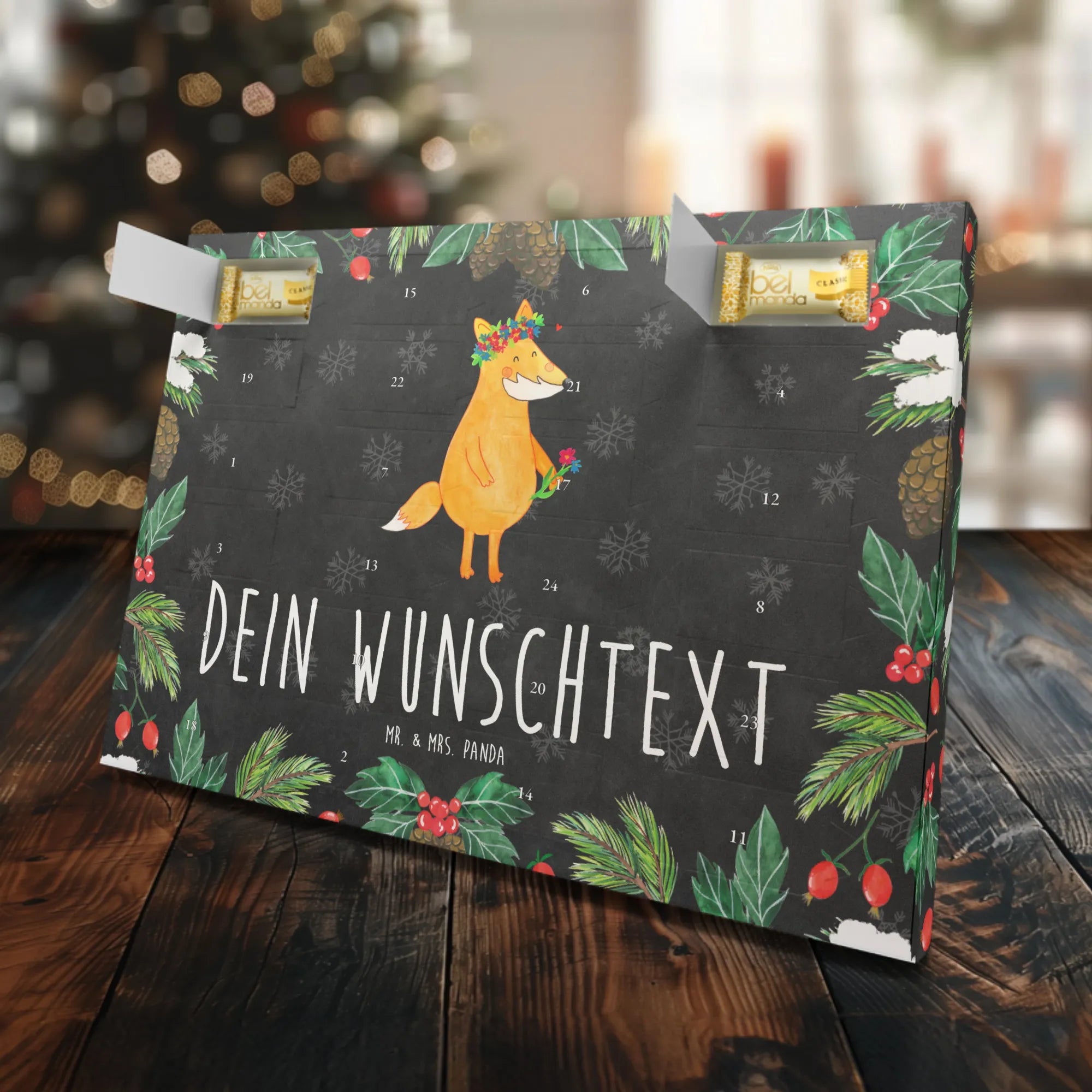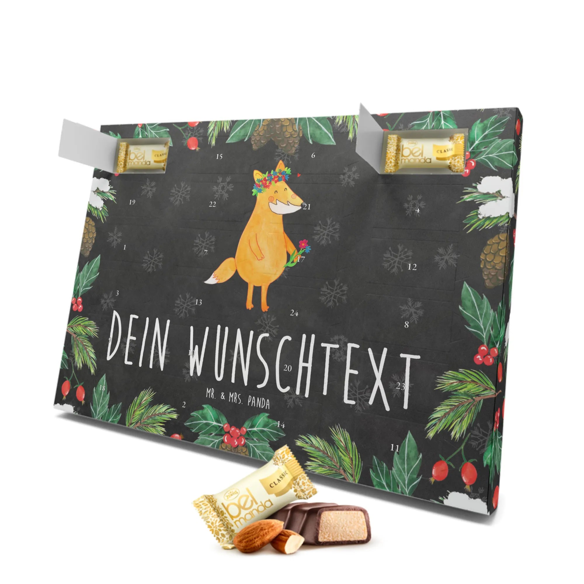 Personalisierter Marzipan Adventskalender Fuchs Blumen - Schwarz