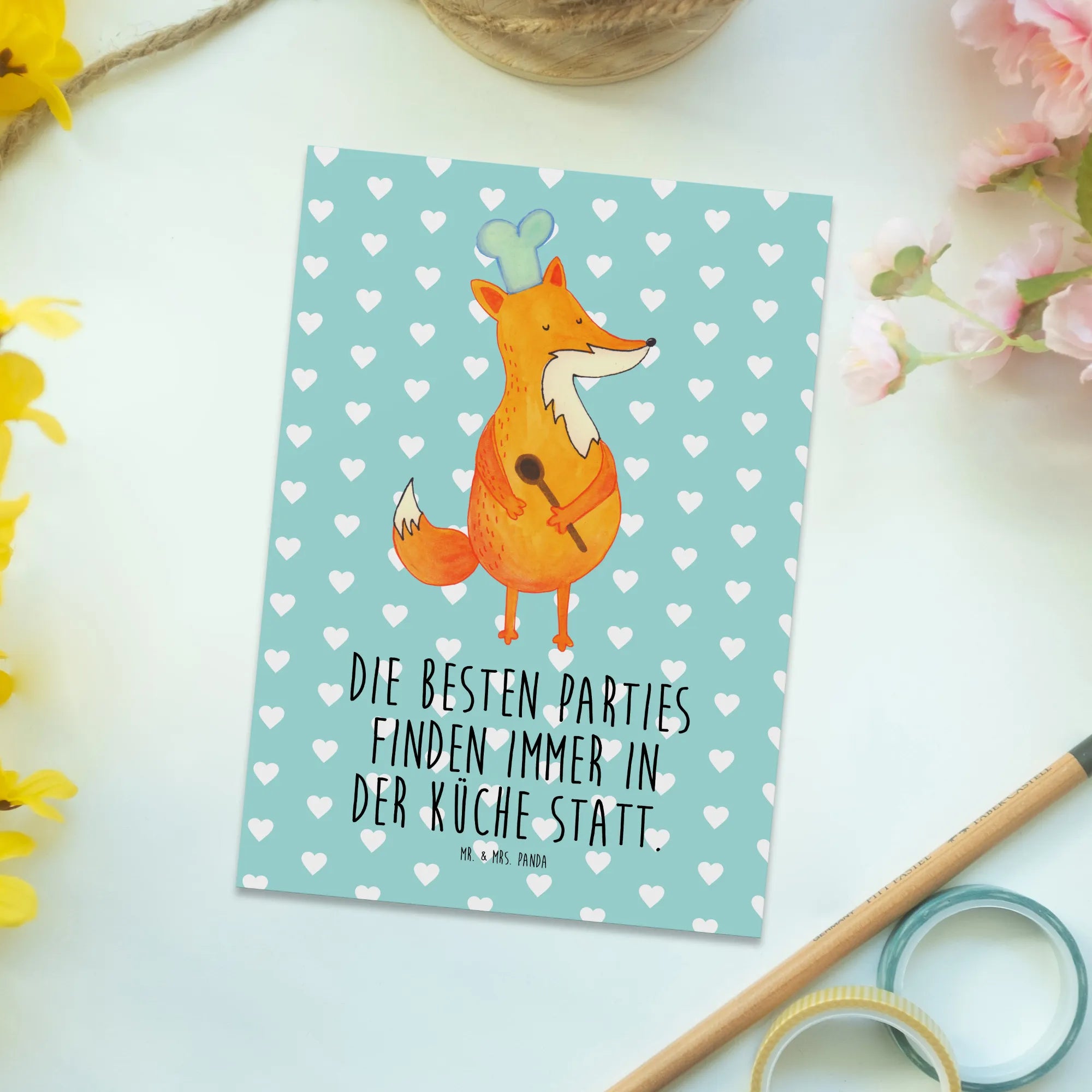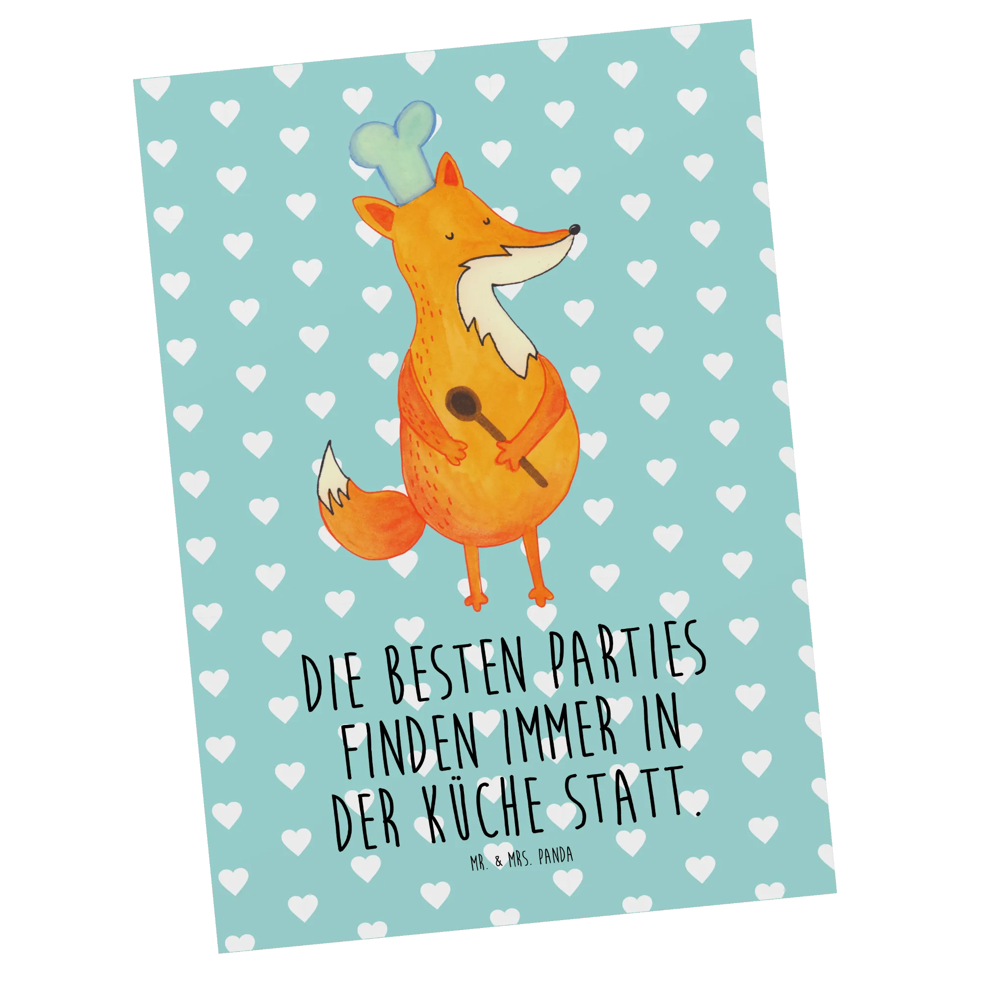 Postkarte Fuchs Koch - mit Spruch - Türkis Pastell