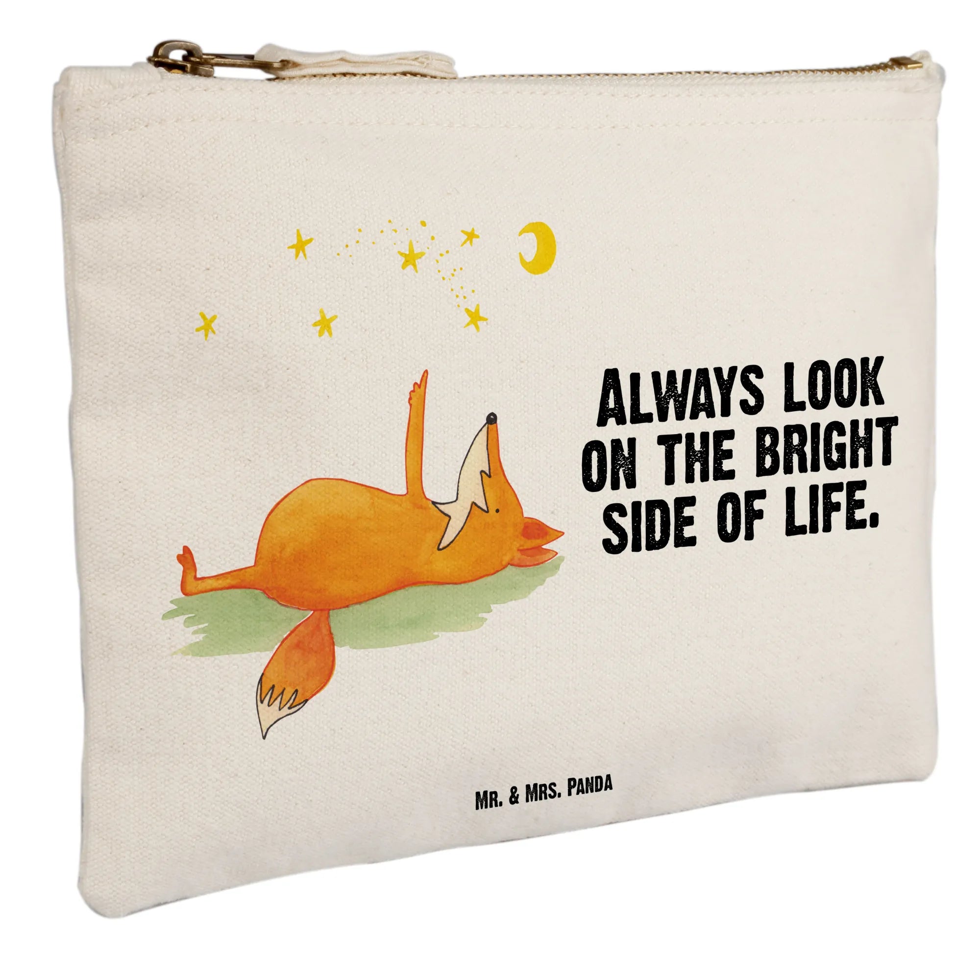 Entdecke die wunderschöne Schminktasche von Mr. & Mrs. Panda mit dem entzückenden Motiv Fuchs Sterne! Diese Kosmetiktasche ist nicht nur ein echter Hingucker, sondern auch das perfekte Accessoire für alle, die gerne ihre Kosmetikartikel stilvoll verstauen. Der süße Fuchs, der vergnügt auf dem Rücken liegt und in den Sternenhimmel schaut, lädt dich ein, das Leben aus einer positiven Perspektive zu betrachten. Mit dem Slogan 'Always look on the bright side of life' wird jeder Tag ein bisschen sonniger.