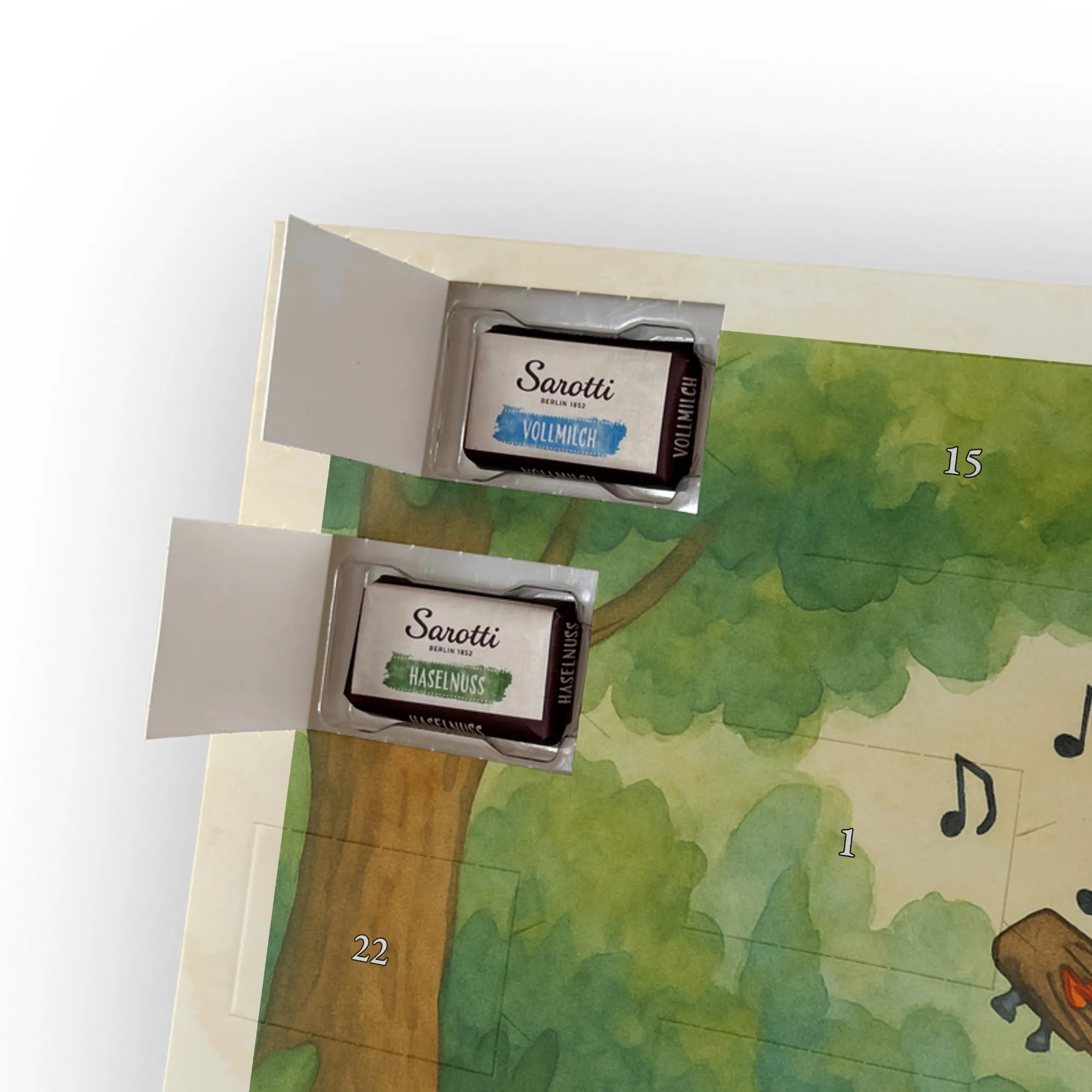 🐼 ADVENTSKALENDER MIT SCHOKOLADE: Liebevolle Illustrationen, seidenmatter Druck, 325×225×27 mm.