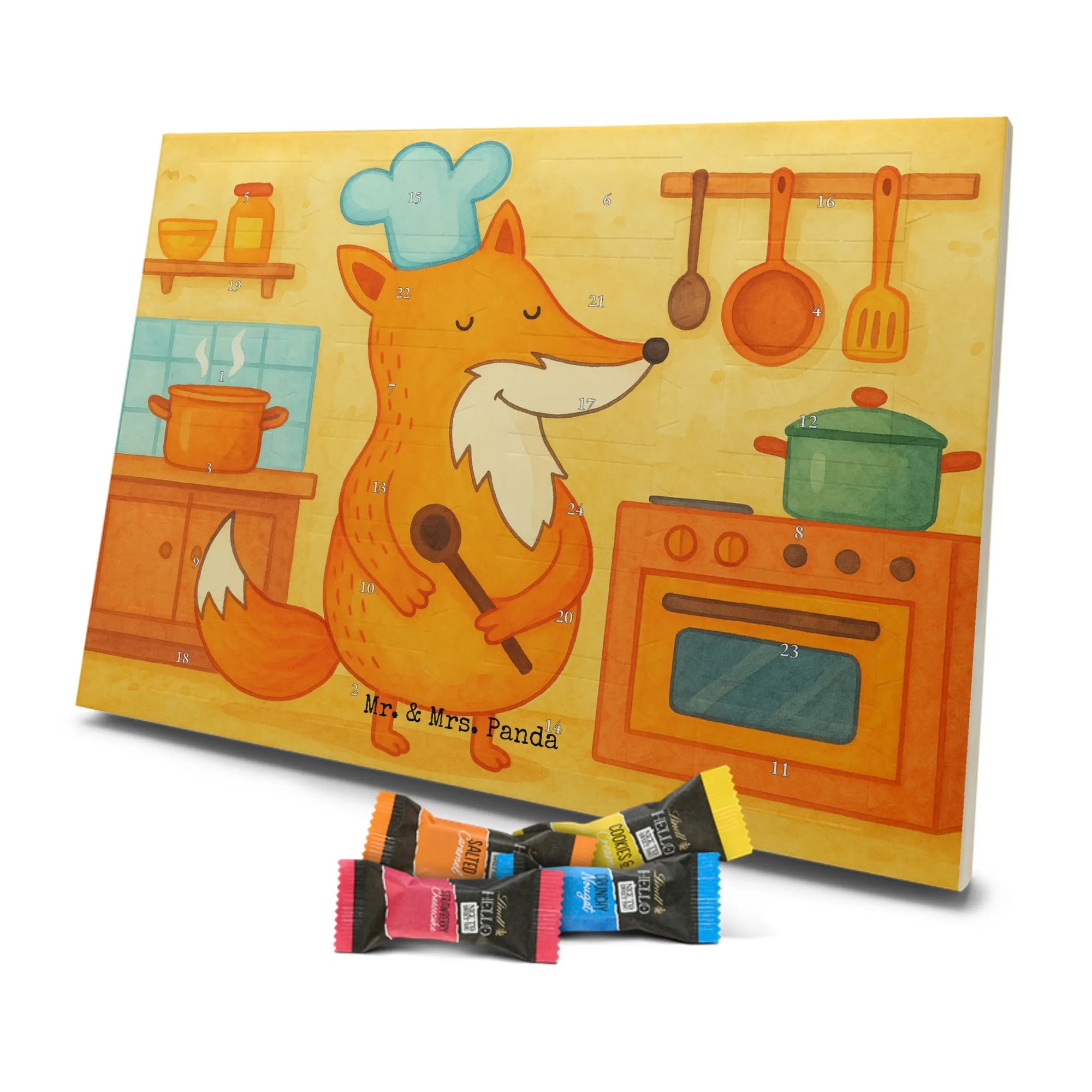 Unser entzückender Schokoladen Adventskalender von Mr. & Mrs. Panda ist das perfekte Highlight für die Adventszeit. Bedruckt mit wunderschönen Motiven & Sprüchen von Mr. & Mrs. Panda zaubert er dir ein Lächeln an jedem Tag im Dezember. Der Kalender ist nicht personalisierbar, überzeugt aber durch brillante Druckqualität mit seidenmatter Oberflächenveredelung und sorgsame bedruckte Seitenflächen. Die stabile Verarbeitung macht ihn zu einem dekorativen Hingucker. Maße: 325 mm x 225 mm x 27 mm. Besonders praktisch: Er kann aufgehängt oder aufgestellt werden, ganz nach deinem Geschmack und Platzangebot. Gefüllt ist der Adventskalender mit Ritter Sport Schokowürfeln – in verführerischen Sorten wie Mousse au Chocolat, Schoko Crisp, Voll-Nuss in Nougatcreme, Karamell Duo, Joghurt und Erdbeer-Joghurt. Wichtiger Hinweis: Es handelt sich um einen Kalender gefüllt mit Ritter Sport Schokolade, nicht um einen Kalender der Marke Ritter Sport. Schenk ihn Freunden, der Familie oder gönn dir selbst eine süße Vorfreude: kleine Schokoladenmomente, liebevoll verpackt von Mr. & Mrs. Panda.