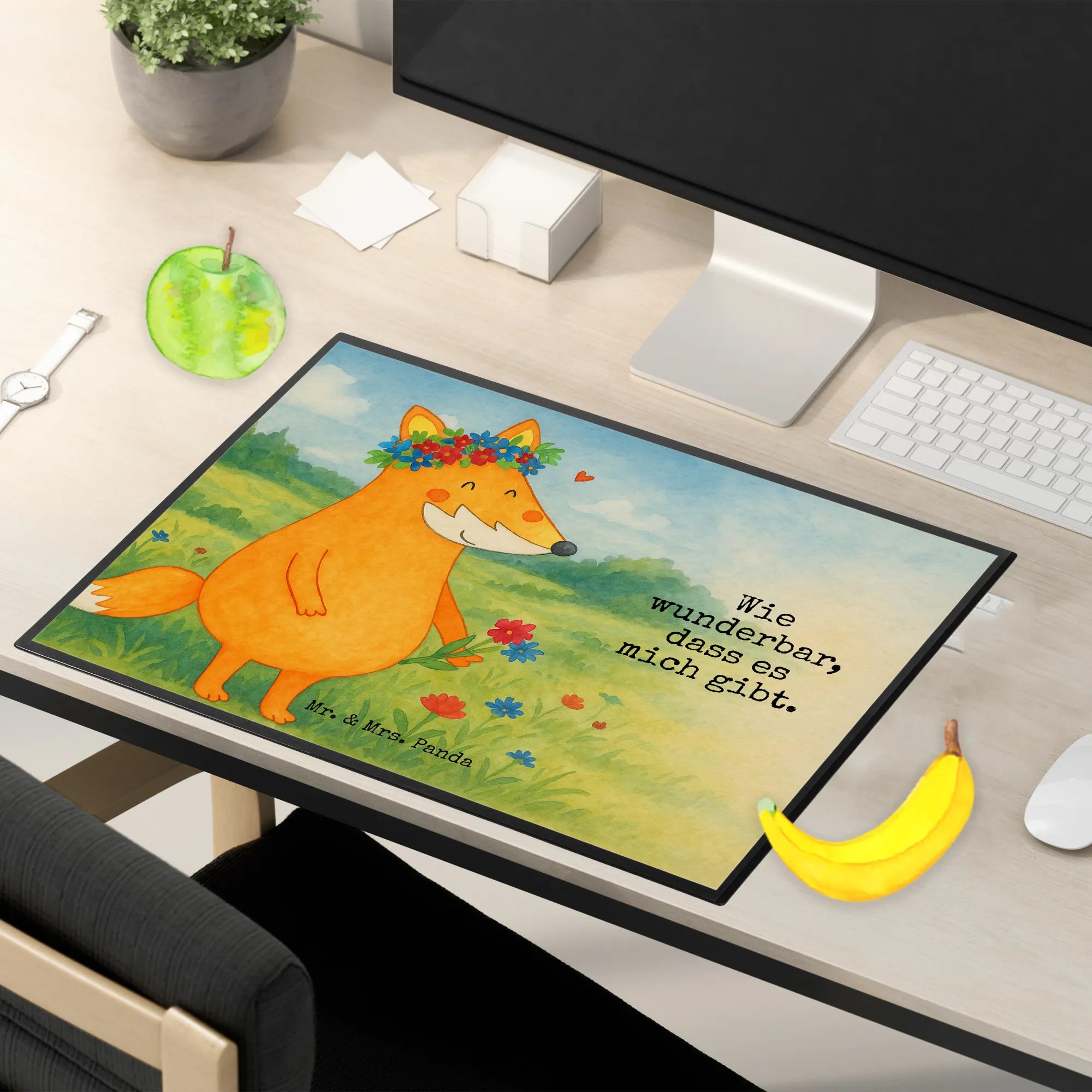 Schreibtischunterlage Fuchs Blumen Design - mit Spruch