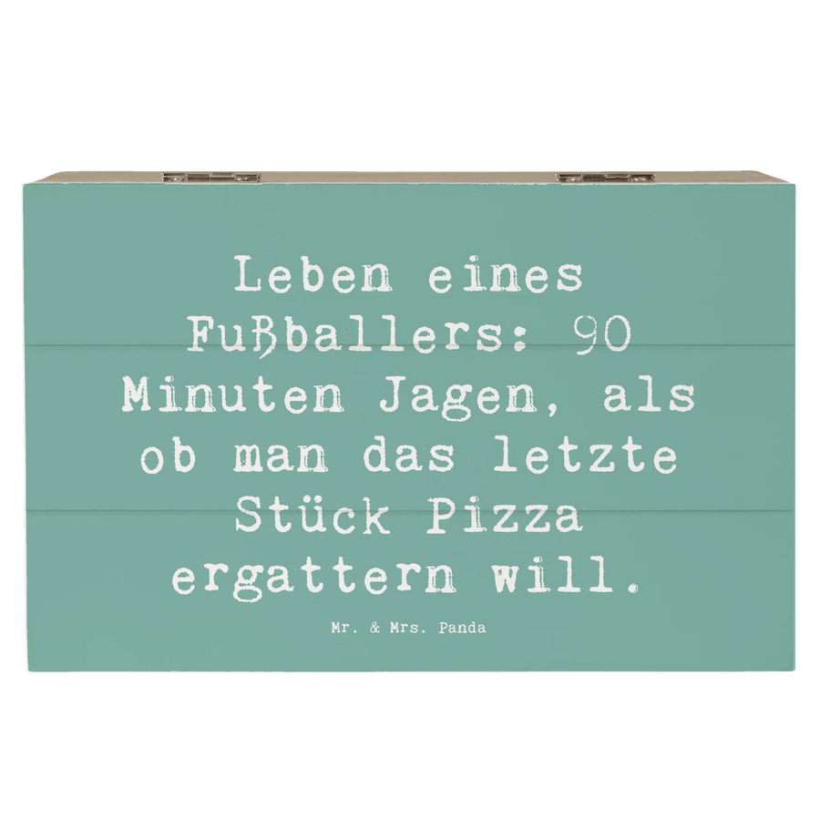 Holzkiste Spruch Leben eines Fußballers: 90 Minuten Jagen, als ob man das letzte Stück Pizza ergattern will. - 19 x 12 cm - Meeresbrise