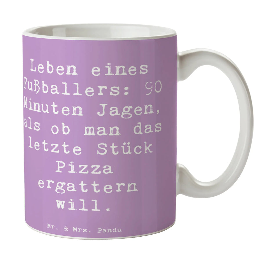 Tasse Spruch Leben eines Fußballers: 90 Minuten Jagen, als ob man das letzte Stück Pizza ergattern will. - Lavendeltraum