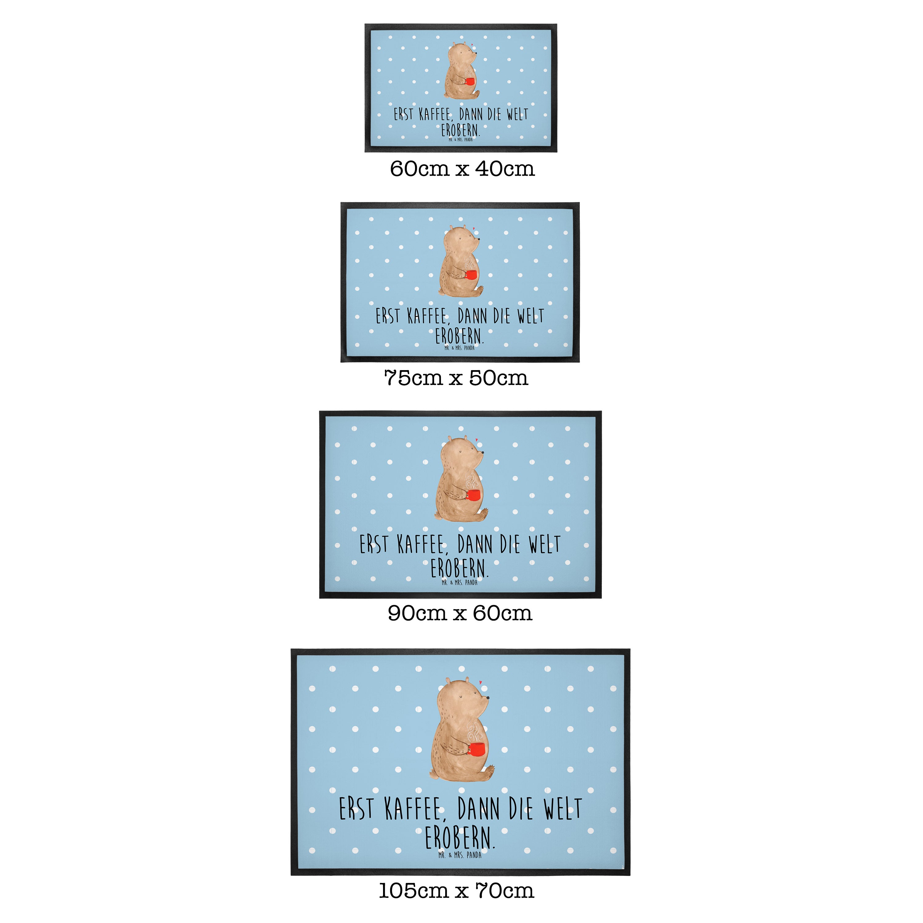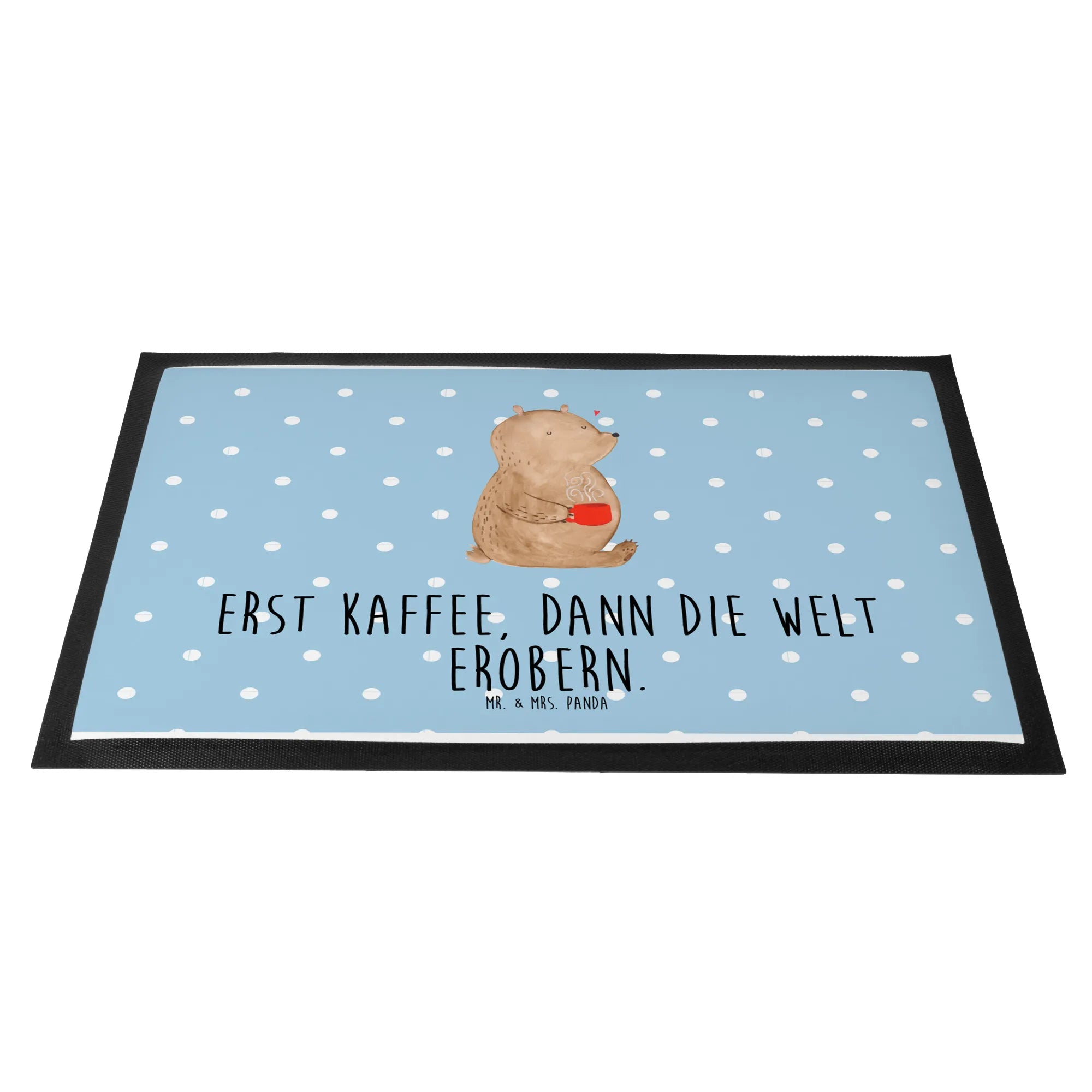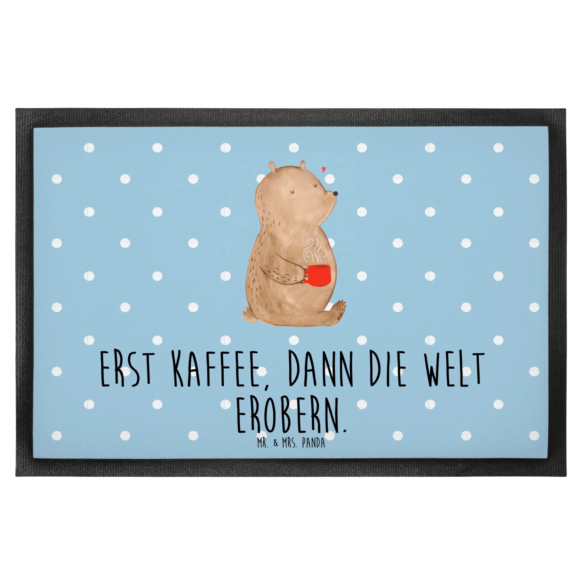 Fußmatte Bär Kaffee - 60 x 90 cm - mit Spruch - Blau Pastell