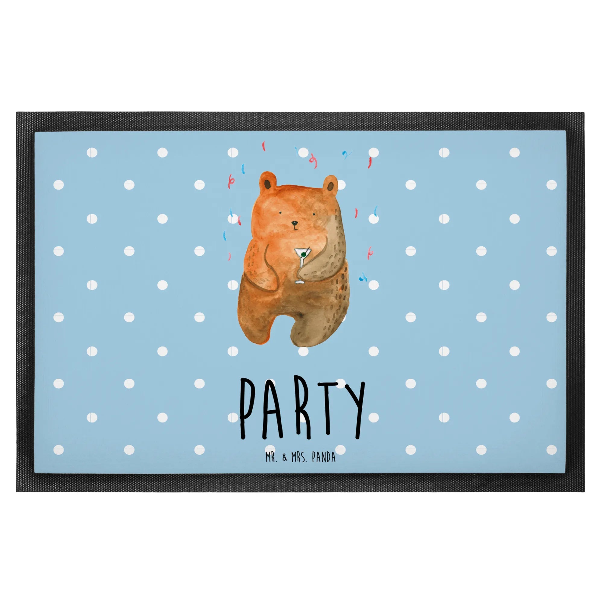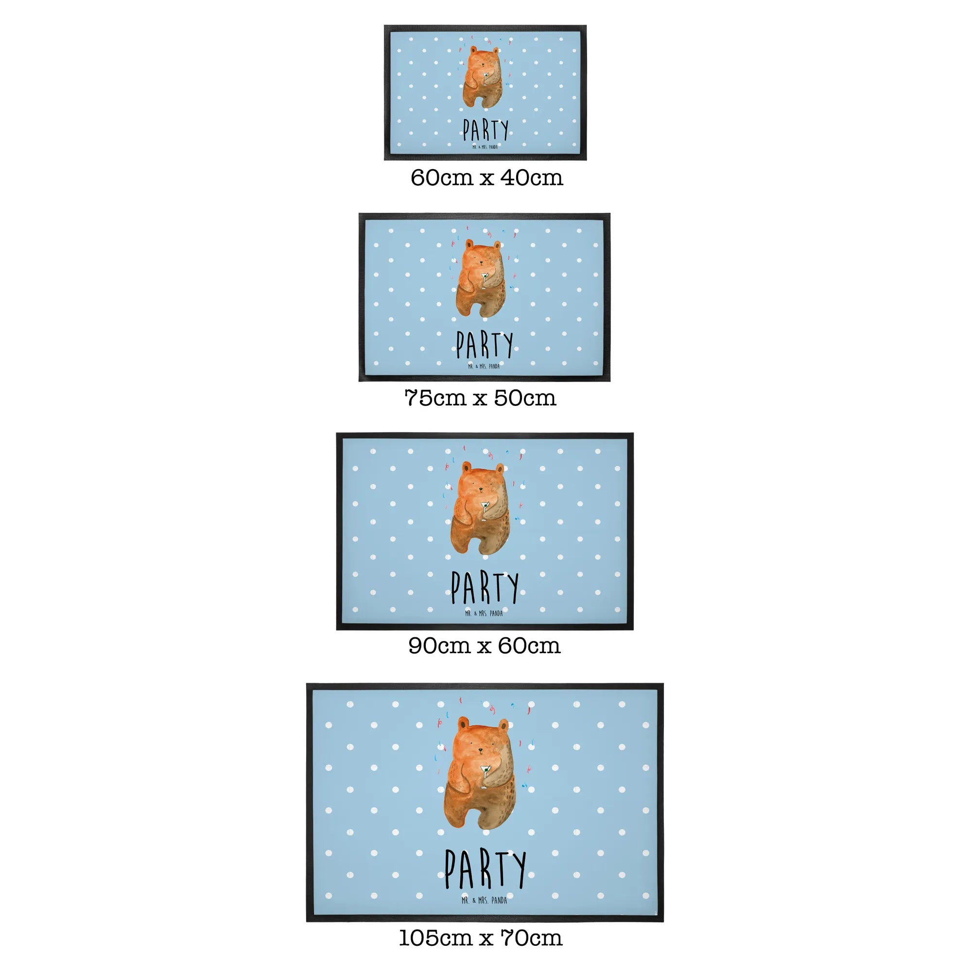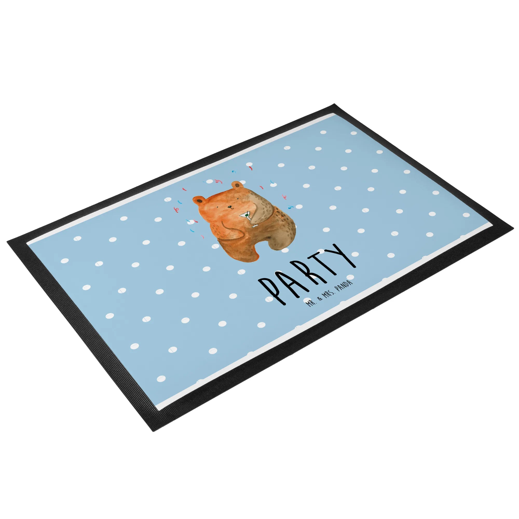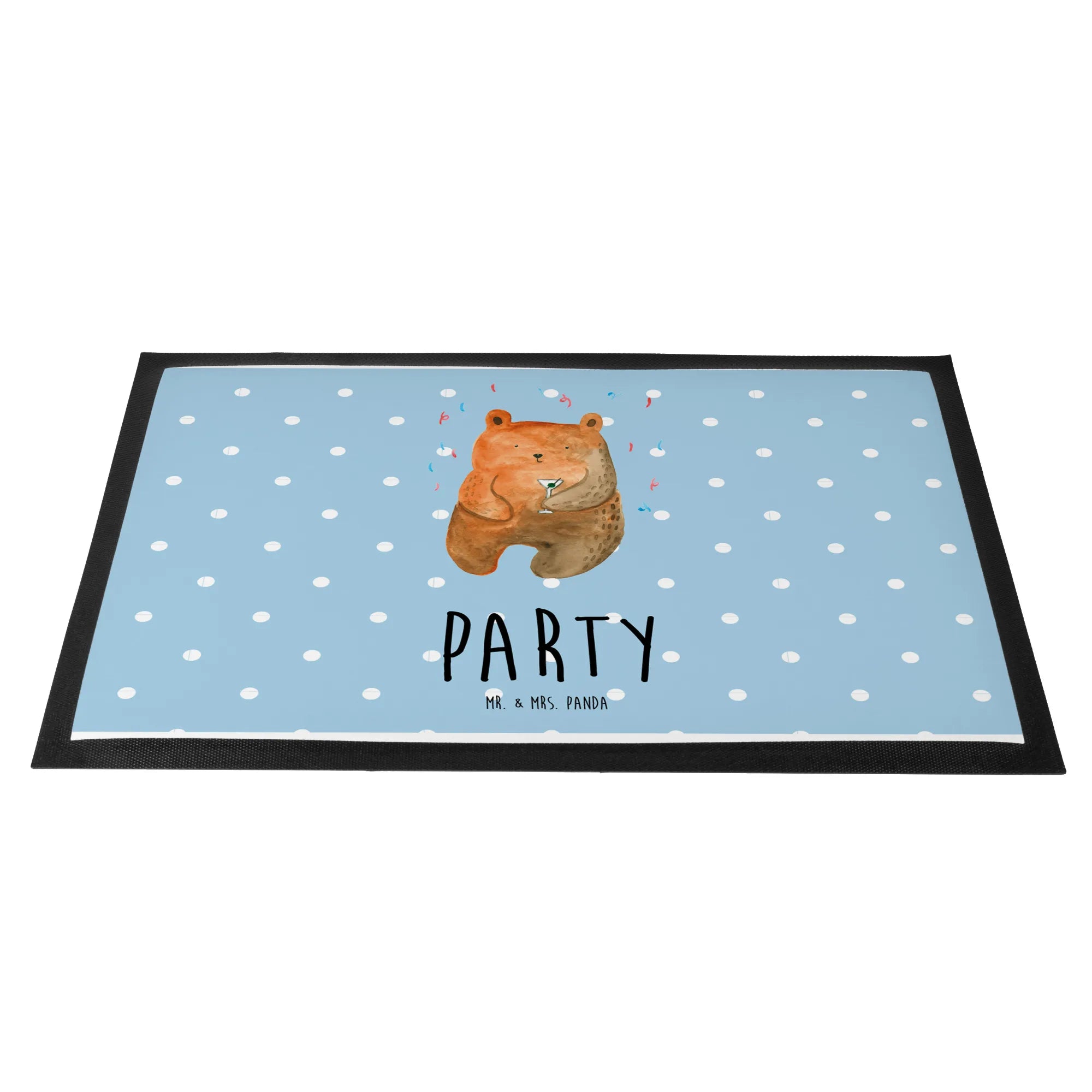Fußmatte Bär Party - 60 x 90 cm - mit Spruch - Blau Pastell