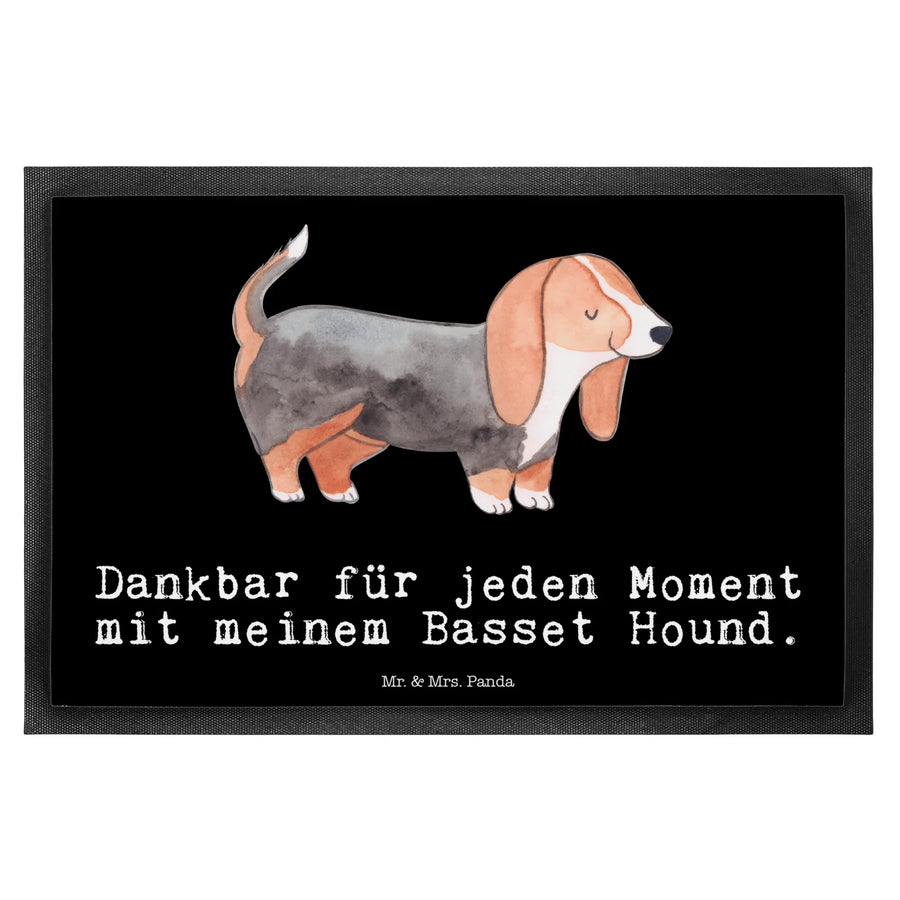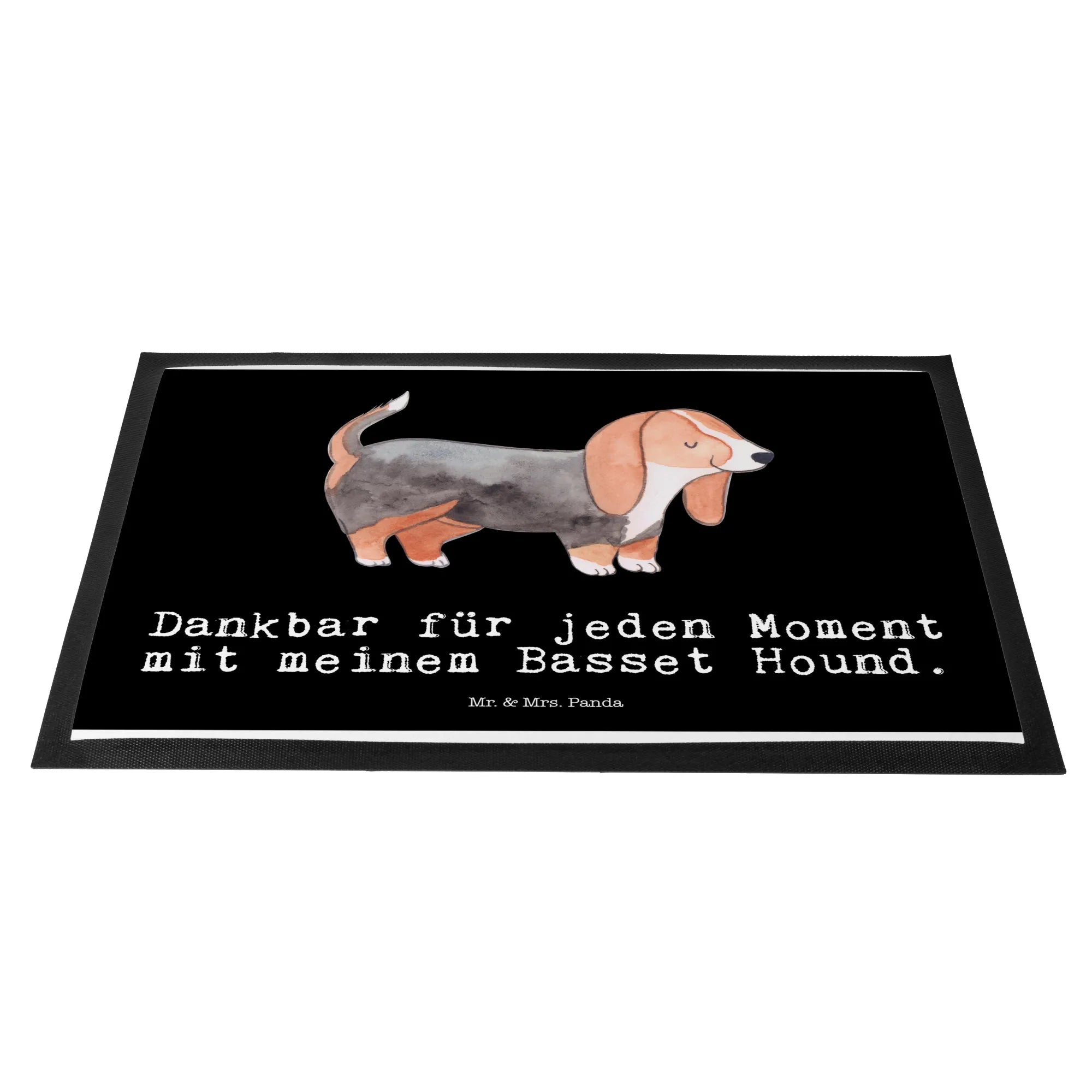 Entdecke die zauberhafte Fußmatte "Basset Hound Moment" von Mr. & Mrs. Panda! Diese wundervolle und hochfunktionale Fußmatte ist nicht nur ein Blickfang an deiner Haustür, sondern auch der perfekte Schmutzfänger, um dein Zuhause sauber zu halten. Mit einer charmanten handgezeichneten Illustration eines Basset Hounds, der mit seinen langen Ohren und dem charakteristischen Blick begeistert, bringt diese Matte Freude in jeden Eingangsbereich. Der liebevolle Slogan "Dankbar für jeden Moment mit meinem Basset Hound" drückt die enge Verbindung zu deinem vierbeinigen Freund aus und sorgt dafür, dass jeder Besucher sich gleich willkommen fühlt.