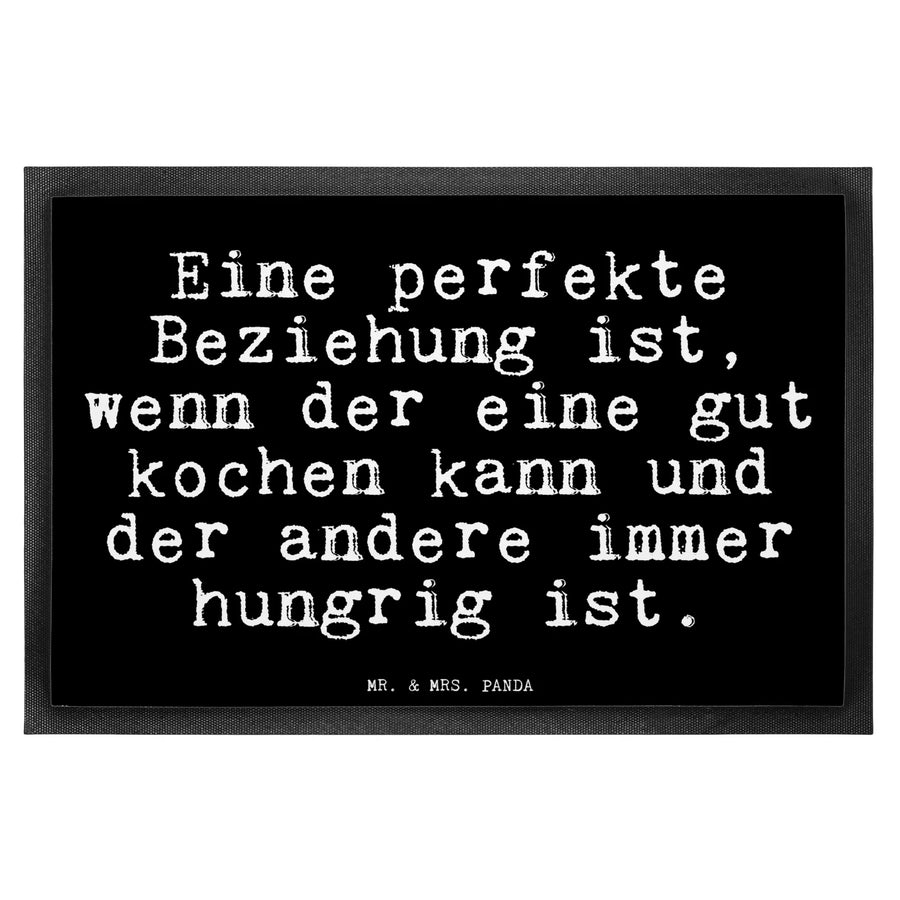 Die Fußmatte "Eine perfekte Beziehung ist, wenn der eine gut kochen kann und der andere immer hungrig ist." von Mr. & Mrs. Panda ist das ideale Geschenk für alle Paare, die ihre Liebe mit einem Augenzwinkern ausdrücken möchten. Diese liebevoll gestaltete Schmutzmatte bringt nicht nur Humor in den Eingangsbereich, sondern auch einen praktischen Schmutzfänger, der jeden Besuch freundlich willkommen heißt.