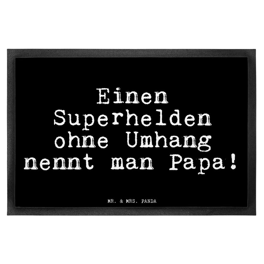 Die Fußmatte "Einen Superhelden ohne Umhang nennt man Papa!" von Mr. & Mrs. Panda ist die perfekte Geschenkidee für alle lieben Väter, die ihren Kindern als echte Superhelden im Alltag zur Seite stehen. Egal, ob zum Vatertag, zum Geburtstag oder einfach nur so – diese besonders gestaltete Schmutzmatte bringt ein Lächeln ins Gesicht und setzt gleichzeitig einen charmanten Akzent vor der Haustür. Mit einer Größe von 40 x 60 cm ist die Fußmatte ideal geeignet, um Schmutz und Dreck draußen zu lassen und gleichzeitig ein Stückchen Persönlichkeit ins Zuhause zu bringen.