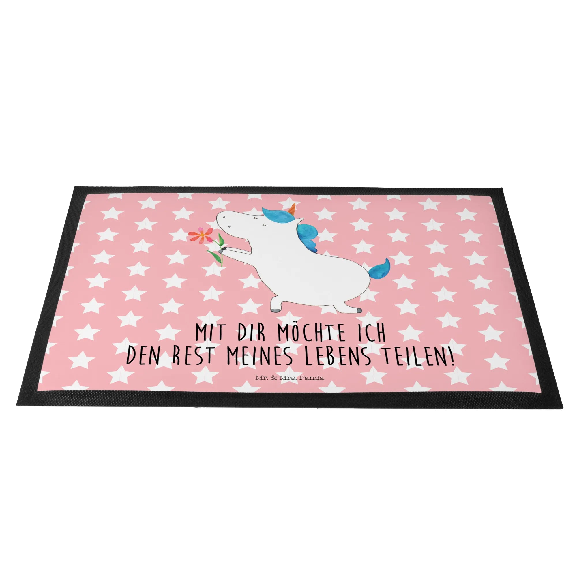 Die Fußmatte "Einhorn Blume" von Mr. & Mrs. Panda ist das perfekte Geschenk für alle, die das Besondere lieben! Diese zauberhafte Schmutzfangmatte bringt mit ihrem handgezeichneten Einhorn und der liebevollen Botschaft "Mit dir möchte ich den Rest meines Lebens teilen!" nicht nur Freude in dein Heim, sondern sorgt auch für ein herzlichen Empfang für deine Gäste.