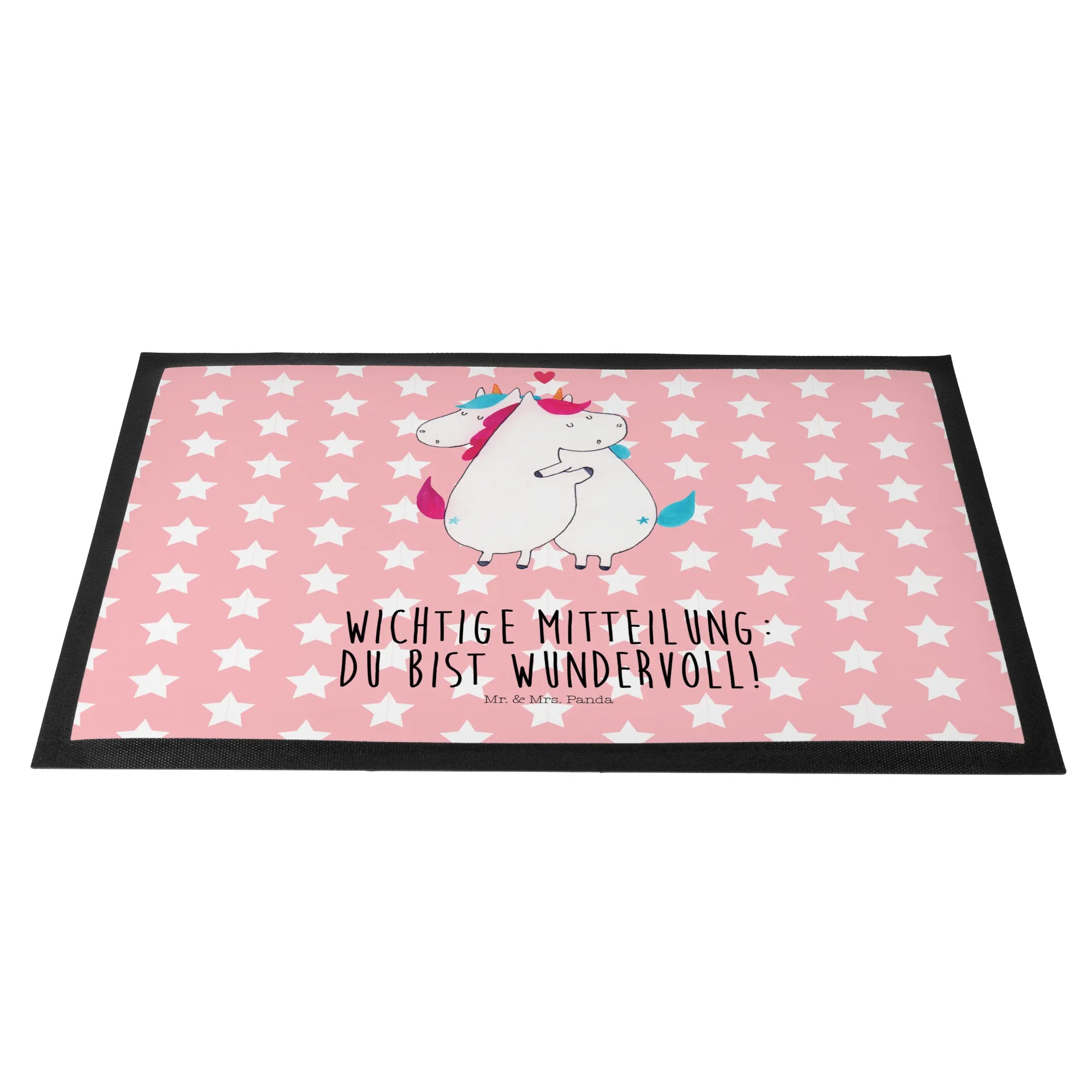 Egal ob du nach einem tollen Geschenk für deine Liebsten suchst oder dein eigenes Zuhause verschönern möchtest, die Fußmatte "Einhorn Mitteilung" aus der Einhorn-Kollektion von Mr. & Mrs. Panda ist die perfekte Wahl. Mit der liebevollen Botschaft "Wichtige Mitteilung: du bist wundervoll!" bringt diese Fußmatte ganz viel Freude und gute Laune direkt vor deine Haustür.