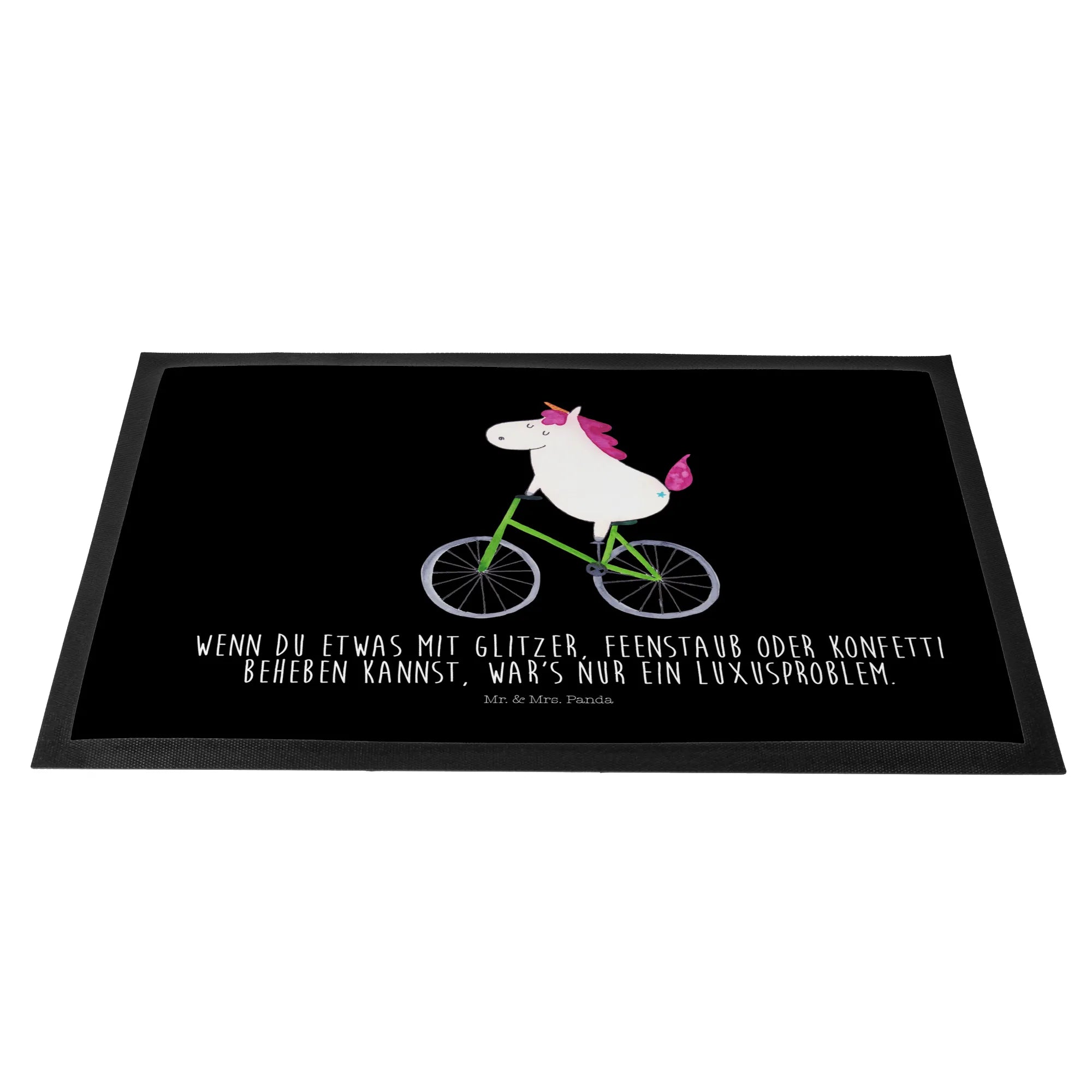Fußmatte Einhorn Radfahrer - 40 x 60 cm - mit Spruch - Schwarz