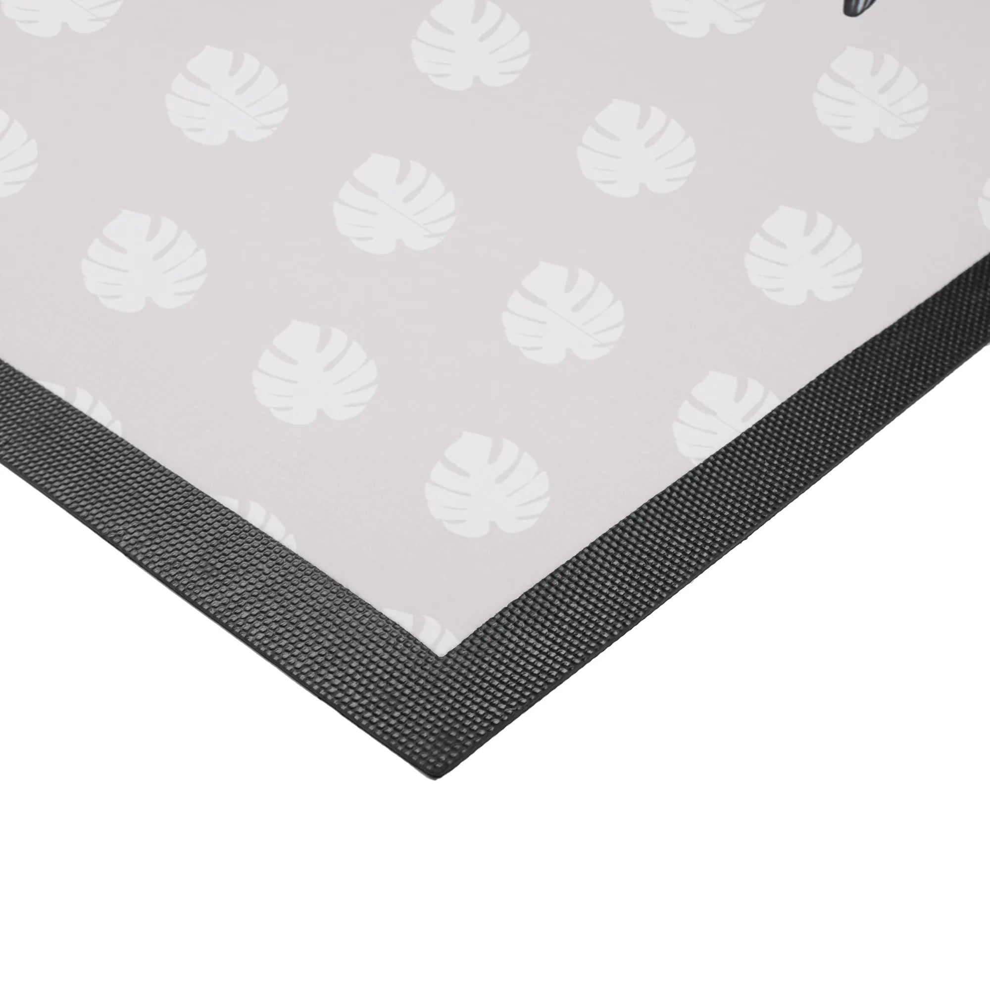 Die Fußmatte ist aus robustem Polyesterfilz gefertigt, mit einer gummierten Rückseite, die für Rutschfestigkeit sorgt. Mit ihrem breiten Gummirand ist sie abriebfest und wetterbeständig, perfekt für den Einsatz innen und außen.