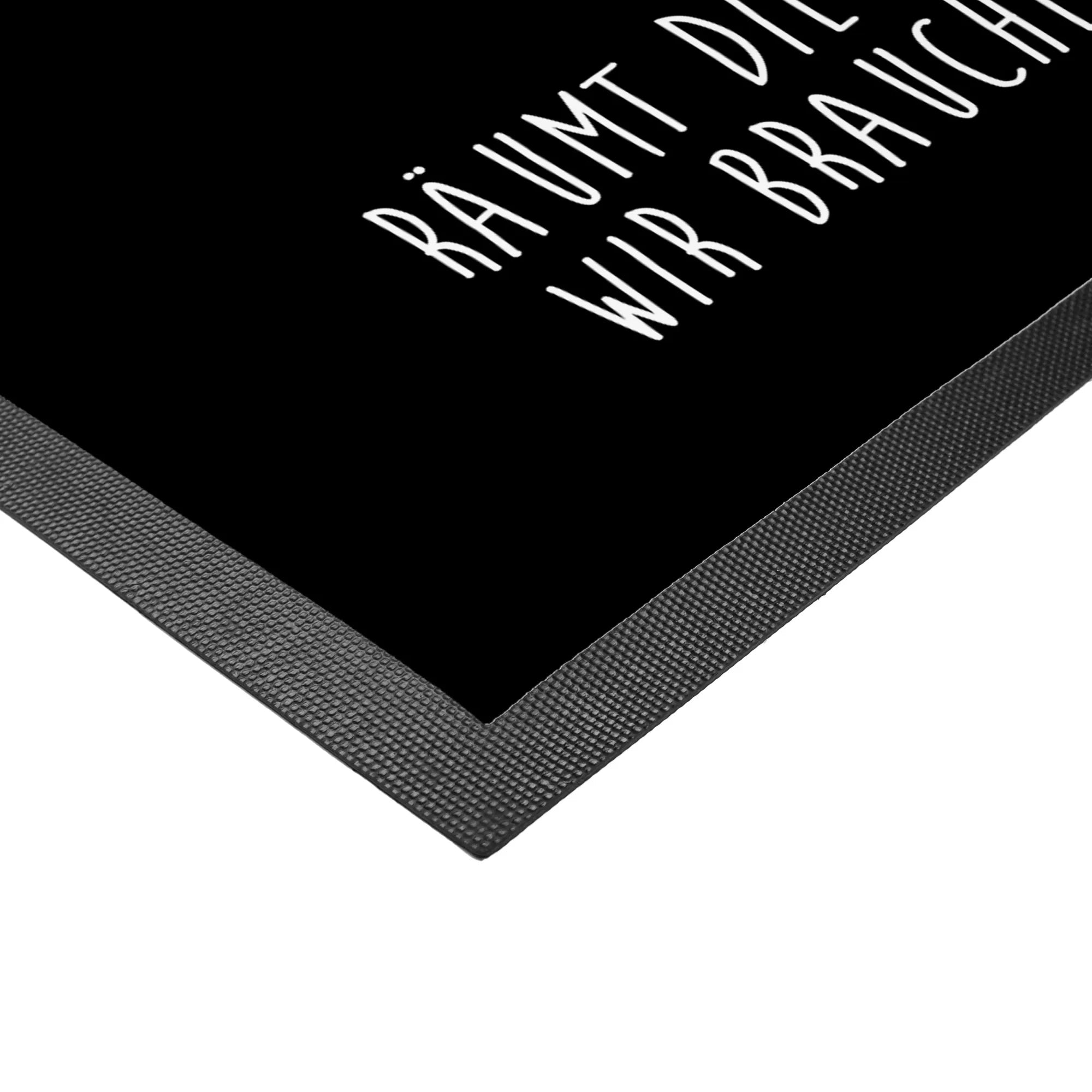 Dieses designstarke Stück ist nicht nur ein echter Hingucker, sondern bringt auch viel Spaß und Leichtigkeit in deinen Flur. Mit dem Slogan 'Räumt die Möbel aus der Wohnung. Wir brauchen Platz zum Tanzen!' zaubert die Fußmatte jedem ein Lächeln ins Gesicht.
