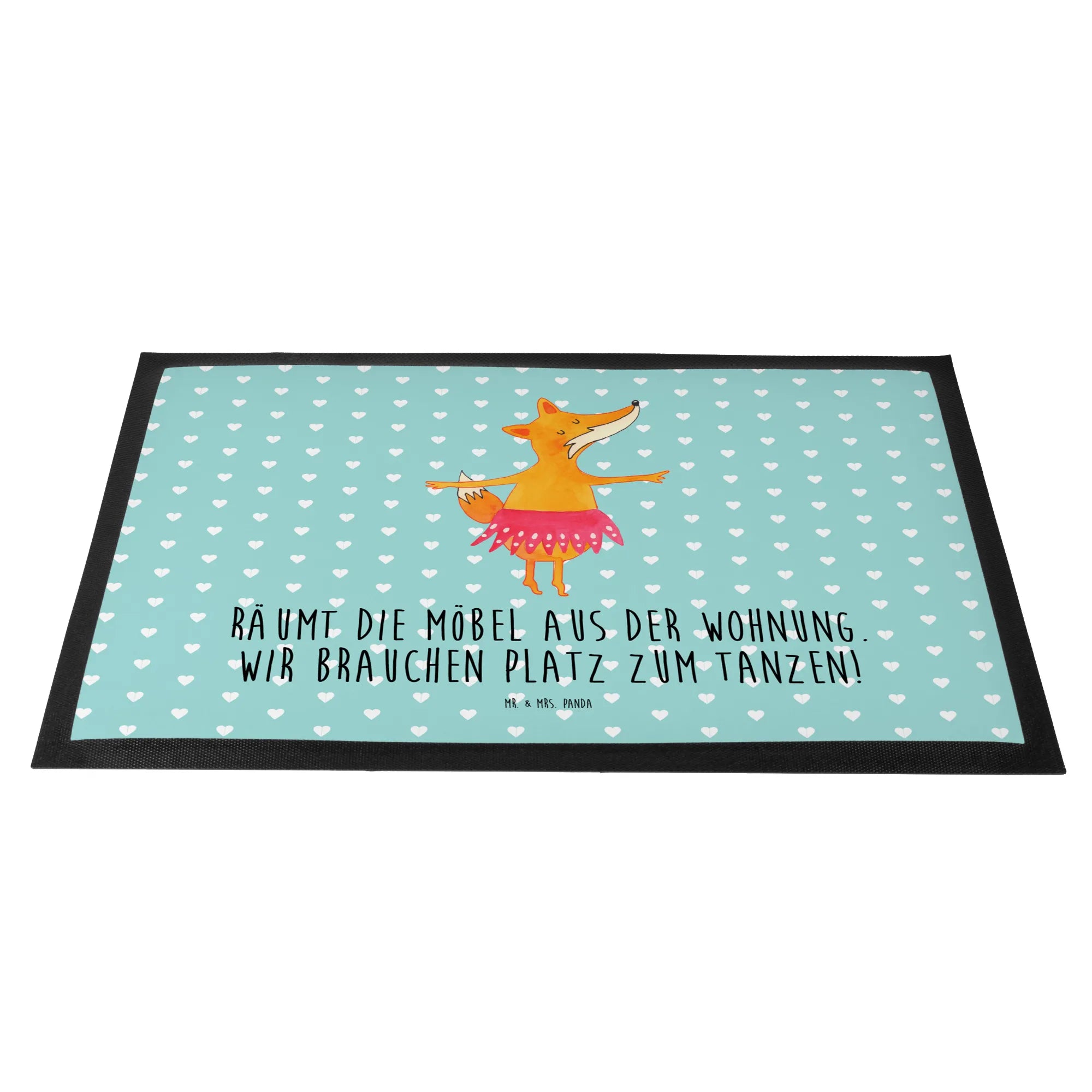 Lass den Fuchs Ballerina in deinem Eingangsbereich tanzen! Diese wunderschöne und hochfunktionale Fußmatte von Mr. & Mrs. Panda zeigt einen charismatischen Fuchs in Ballerina-Pose, umrahmt von einem traumhaften türkisfarbenen Hintergrund. Jedes Mal, wenn du nach Hause kommst und diese Schmutzmatte betrittst, wirst du fühlen, wie die Leichtigkeit des Tanzes deinen Alltag umgibt. Die witzige Botschaft 'Räumt die Möbel aus der Wohnung. Wir brauchen Platz zum Tanzen!' ist eine liebevolle Erinnerung, das Leben mit Freude zu leben und zu genießen.