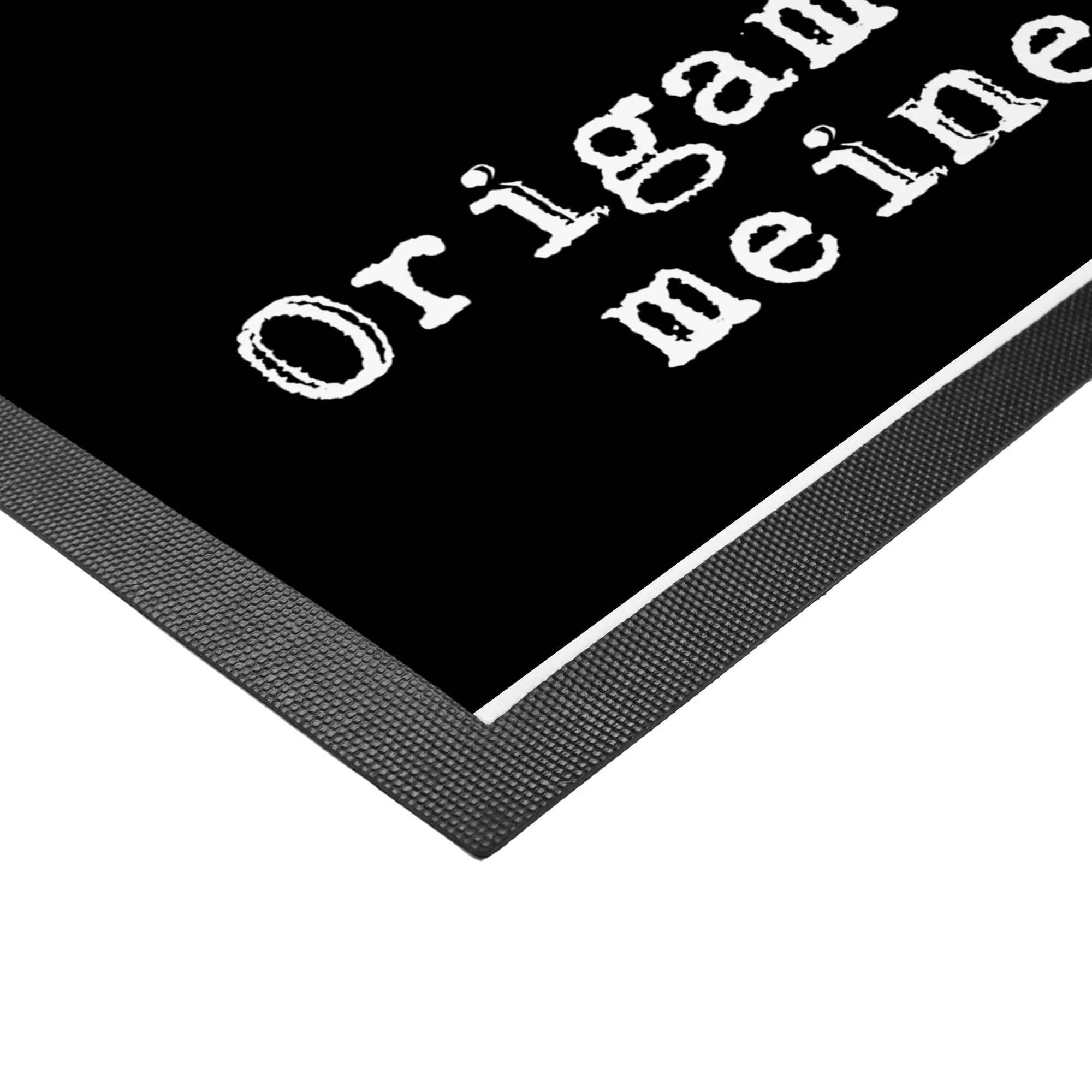 Mit den Maßen von 50 x 75 cm passt sie perfekt vor jede Tür, während das pflegeleichte Material eine einfache Reinigung ermöglicht. Du kannst die Matte einfach ausklopfen oder bei Bedarf bei 30°C waschen. Mit dem Spruch 'Origami falten ist meine Medizin' wird diese Fußmatte zudem zu einem liebevollen Statement für jeden Origami-Fan.