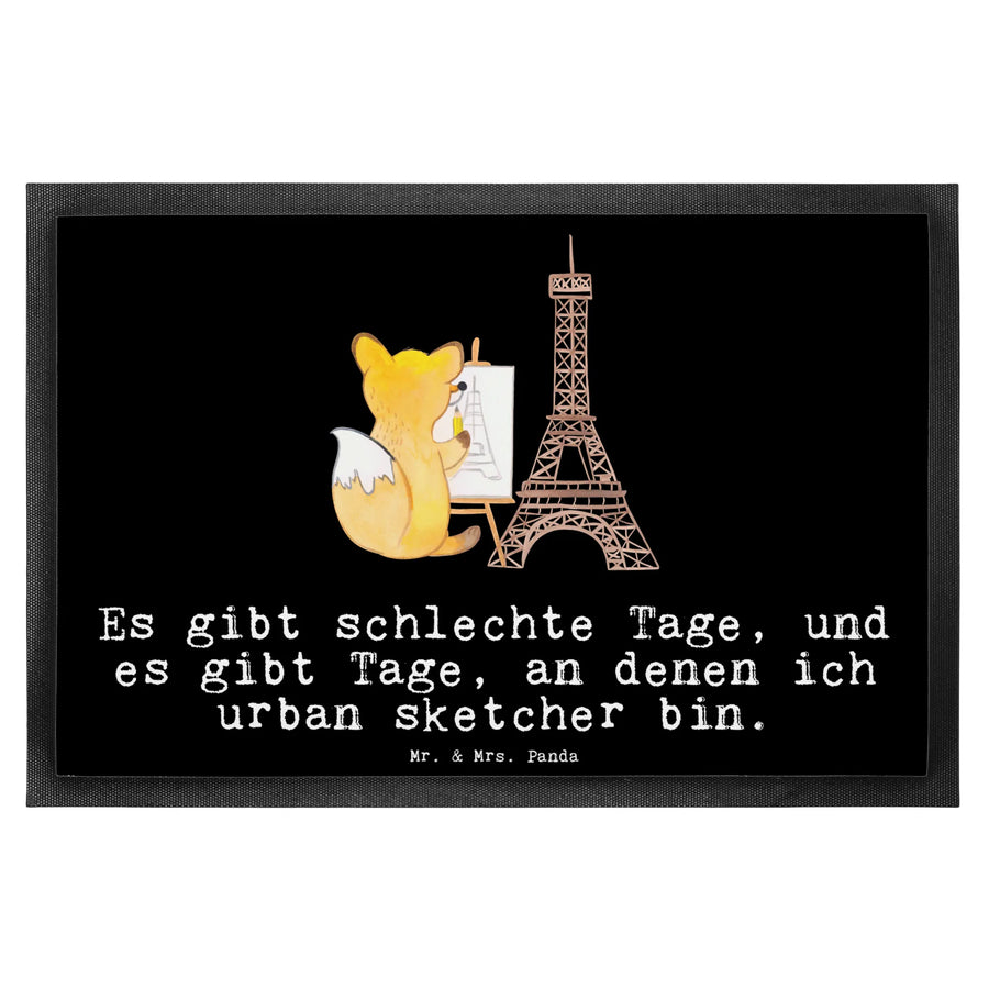 Entdecke die wunderbare Fußmatte "Fuchs Urban sketching Tage" von Mr. & Mrs. Panda – der perfekte Begleiter für kreative Köpfe und Künstler!
