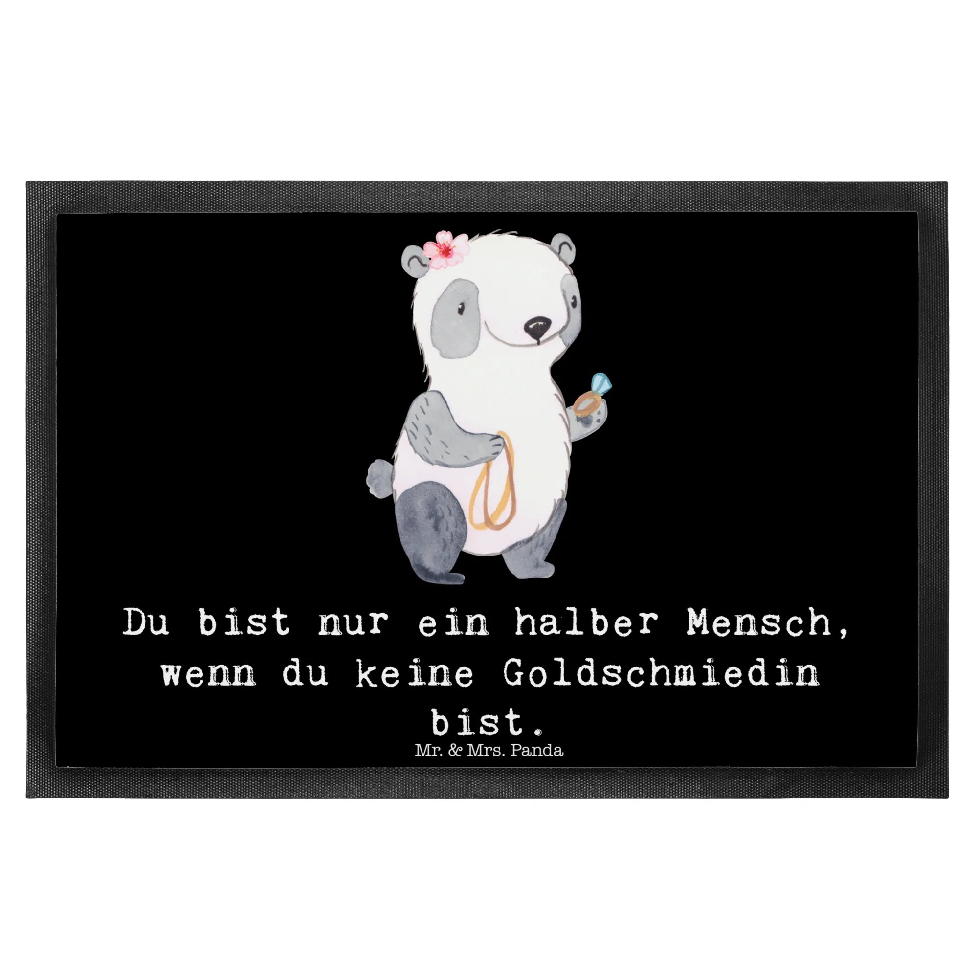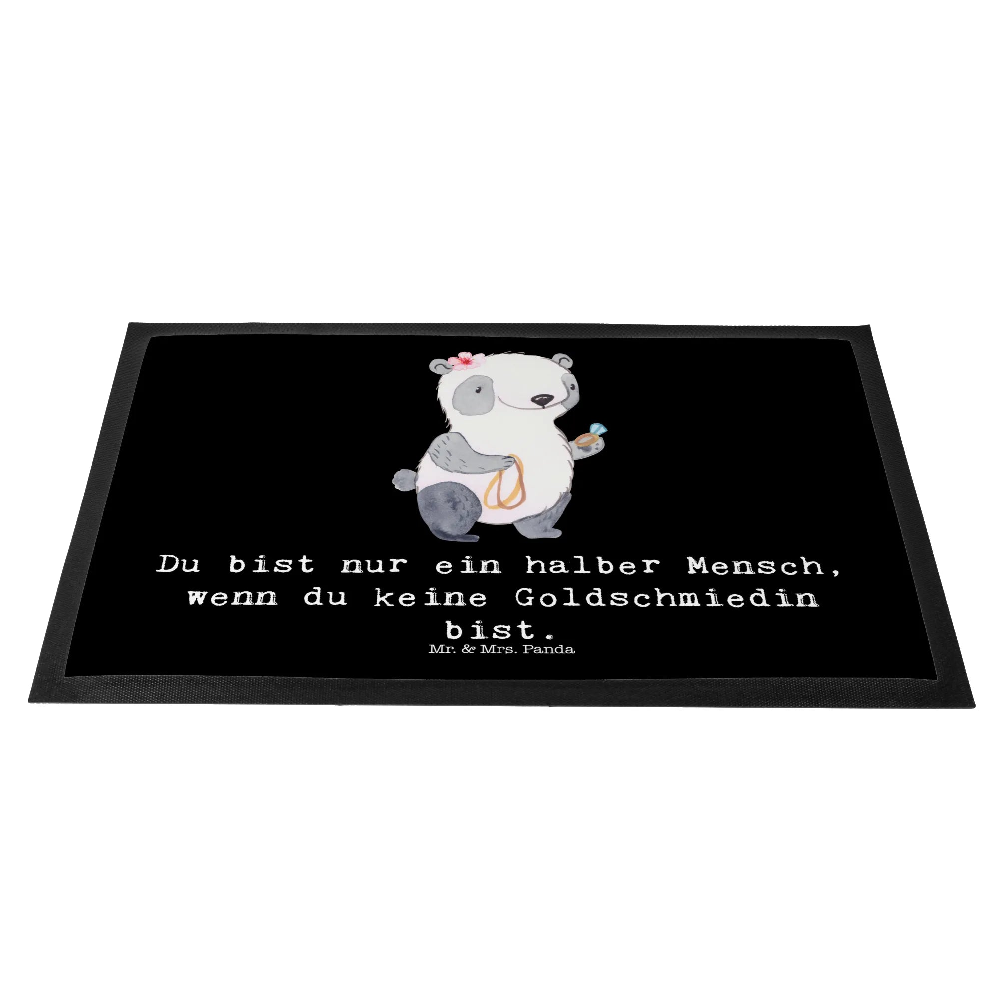 Entdecke die wundervolle Fußmatte "Goldschmiedin mit Herz" von Mr. & Mrs. Panda! Diese Matte ist nicht nur ein echter Blickfang für jede Haustür, sondern auch das ideale Geschenk für alle Goldschmiedinnen und Schmuckliebhaber. Mit dem liebevollen Design, das eine süße Pandadame zeigt, die Goldschmuck in der Hand hält, bringt sie Freude in jeden Eingangsbereich.