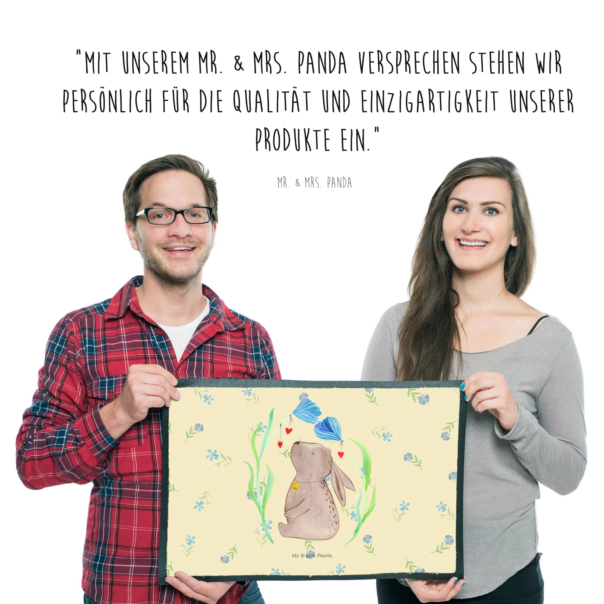 Entdecke die zauberhafte Fußmatte Hase Blume von Mr. & Mrs. Panda! 🌼 Diese wunderschöne und hochfunktionale Fußmatte bringt fröhliche Atmosphäre in dein Zuhause - ideal als Oster-Dekoration oder frühlingshaftes Geschenk.