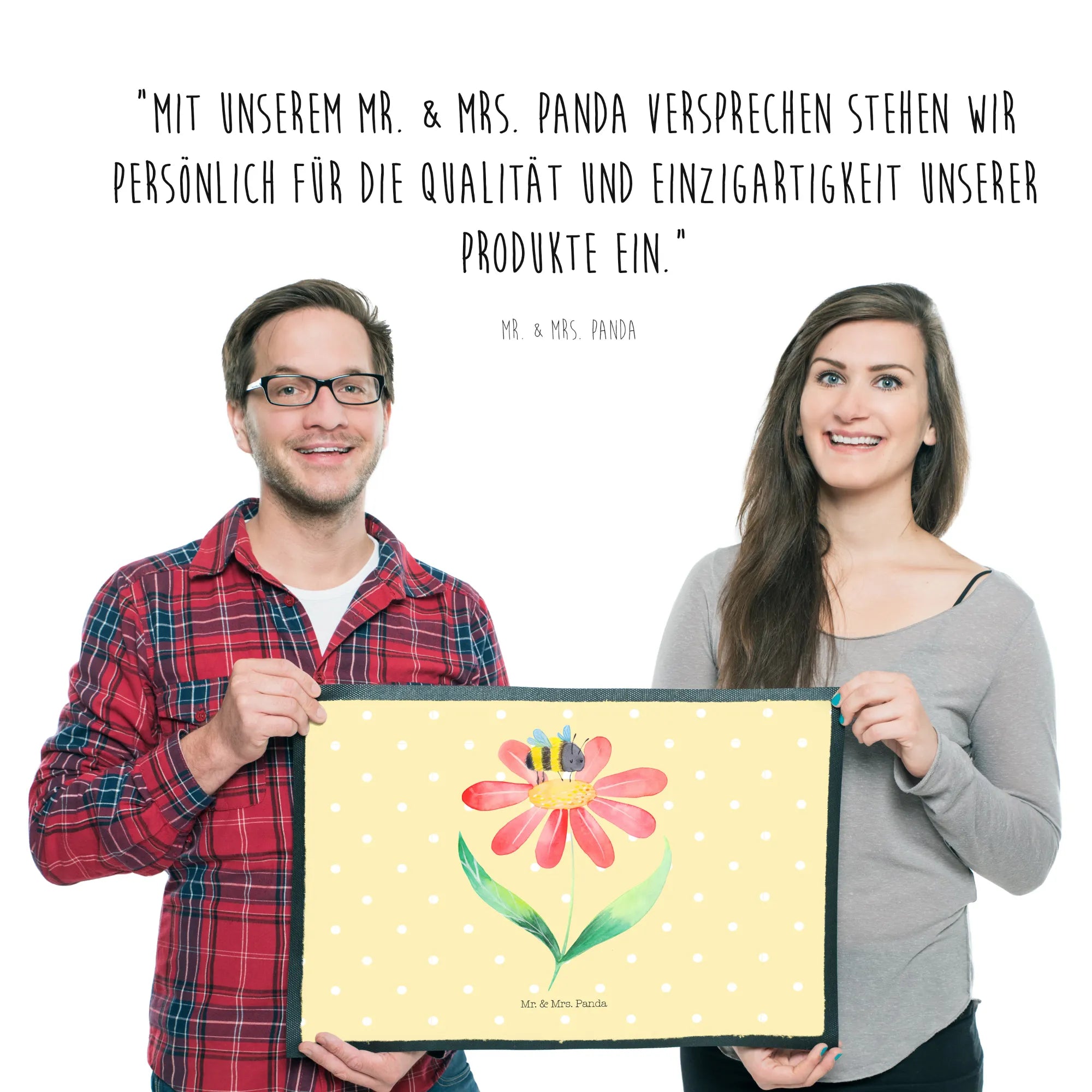 Die wunderschöne und hochfunktionale Fußmatte Hummel Blume von Mr. & Mrs. Panda ist der perfekte Begleiter für dein Zuhause! Sie bringt Farbe und gute Laune direkt an deine Haustür und sorgt dafür, dass du und deine Gäste stets mit einem Lächeln empfangen werden.