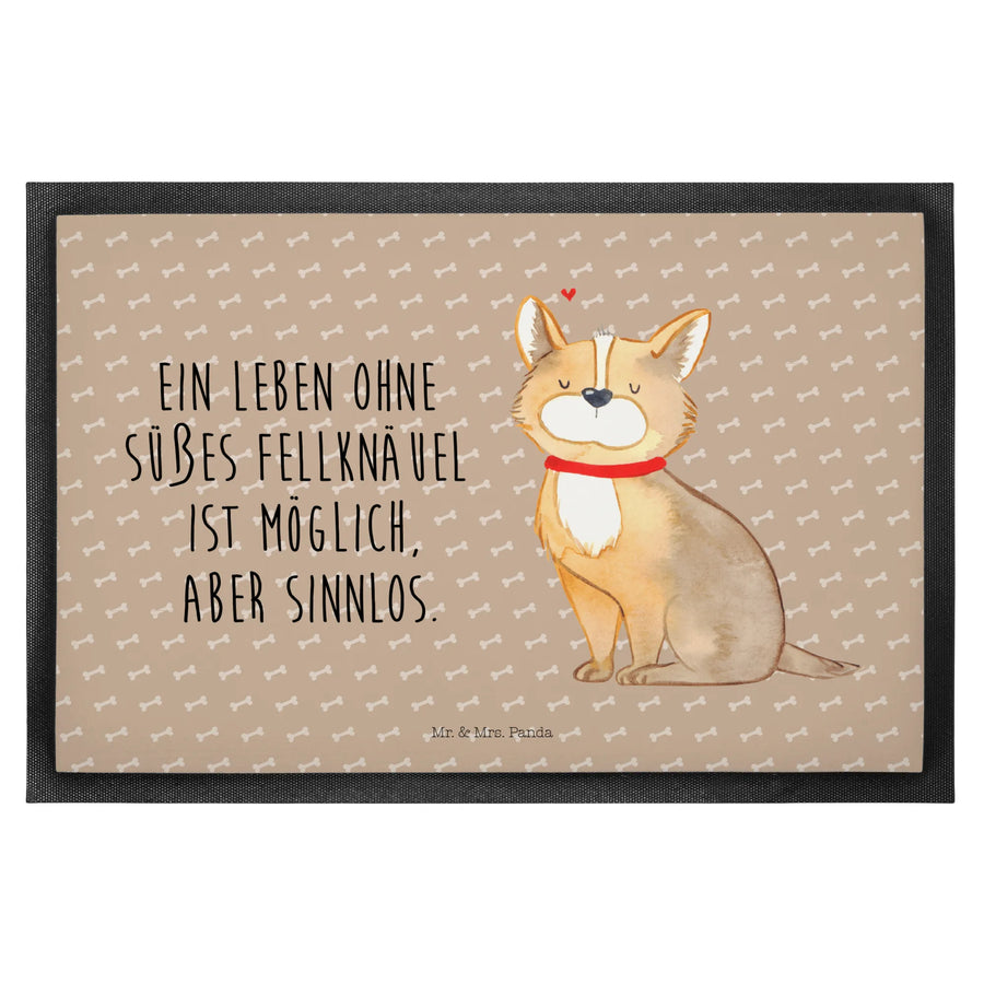 Die Fußmatte "Hundeglück" von Mr. & Mrs. Panda ist das perfekte Geschenk für alle Hundeliebhaber und Hundebesitzer. Mit einem fröhlichen Hundemotiv, das einen süßen Corgie mit rotem Halsband zeigt, zaubert diese Matte jedem ein Lächeln ins Gesicht.