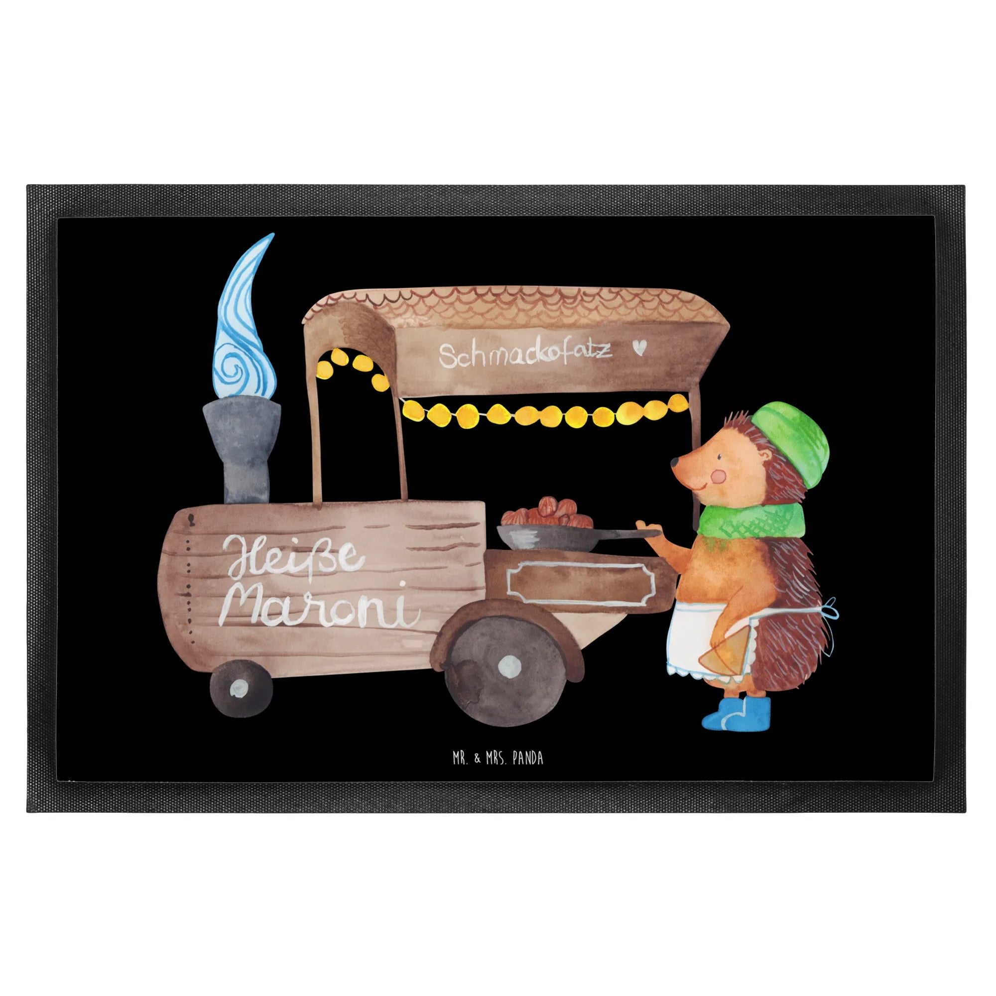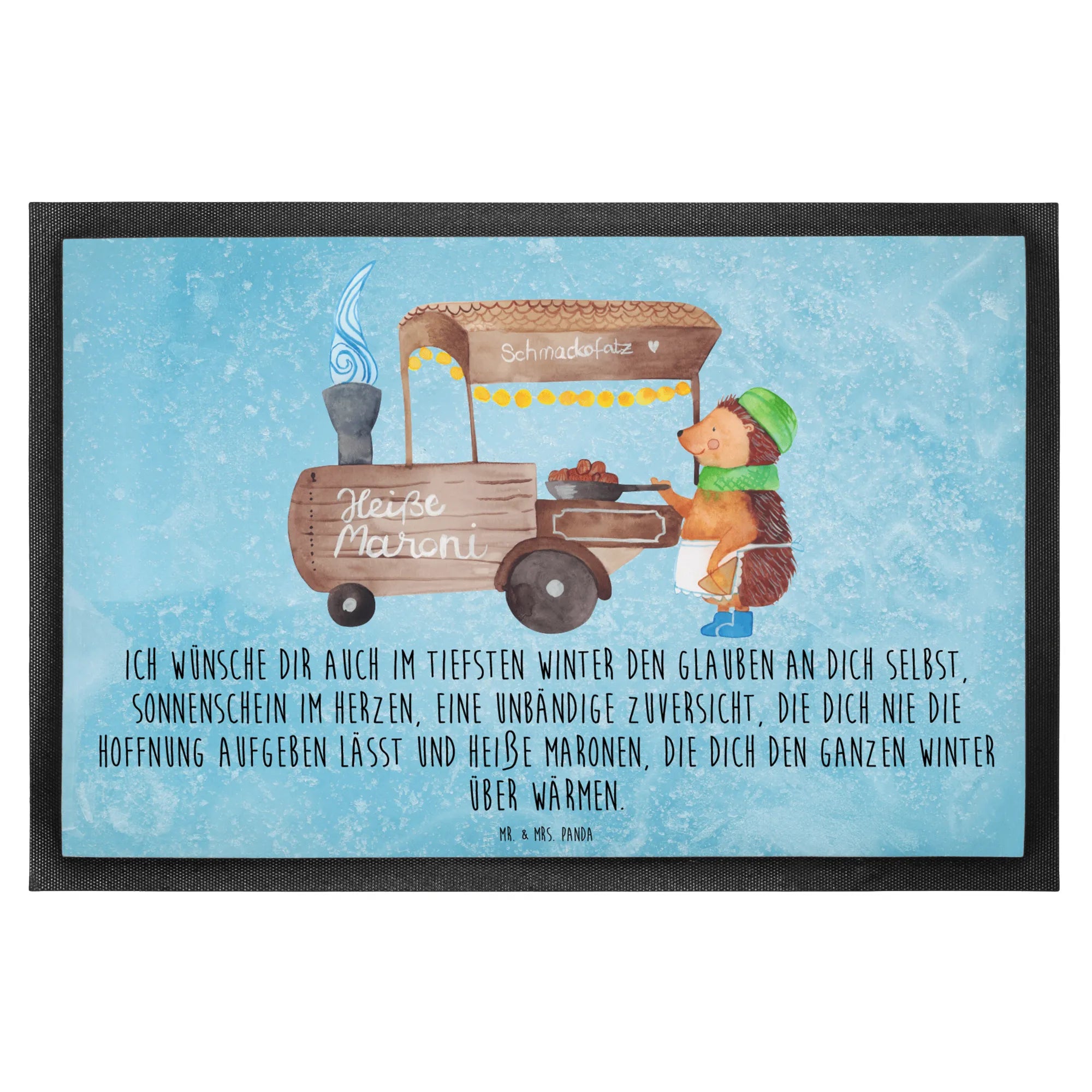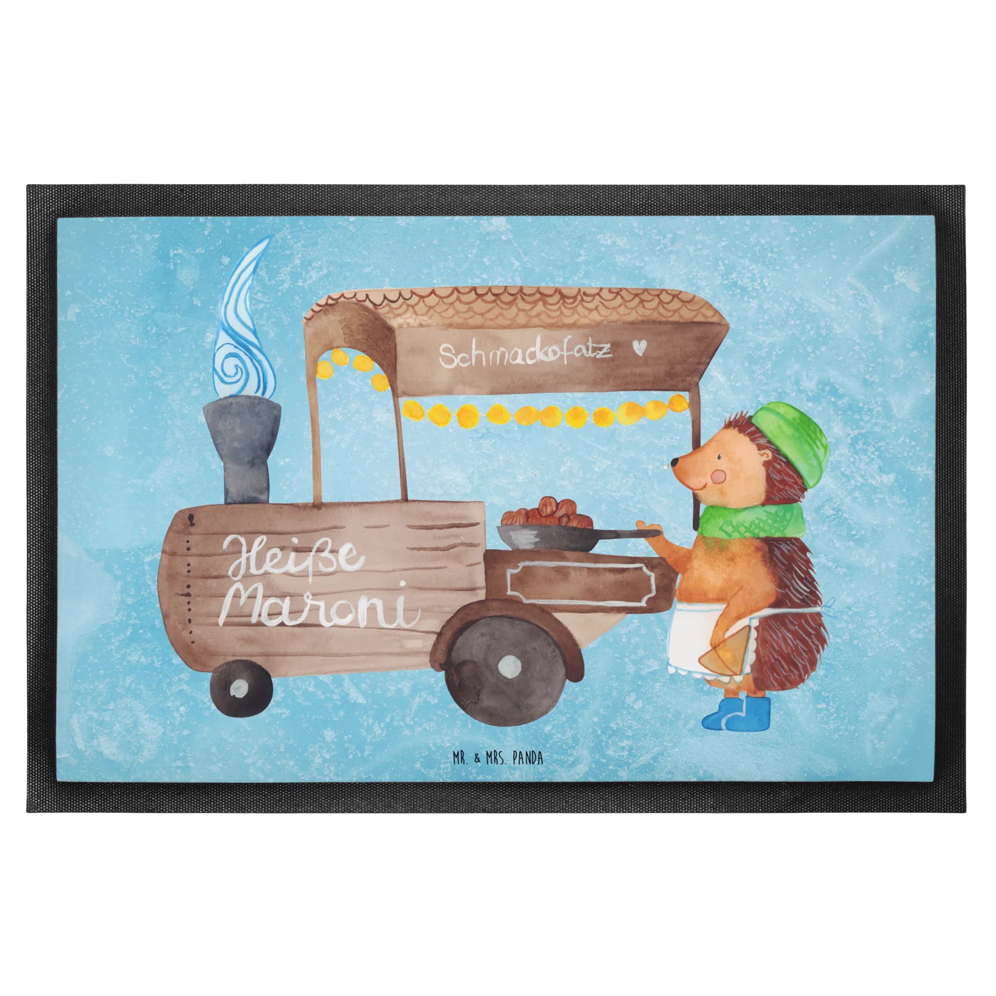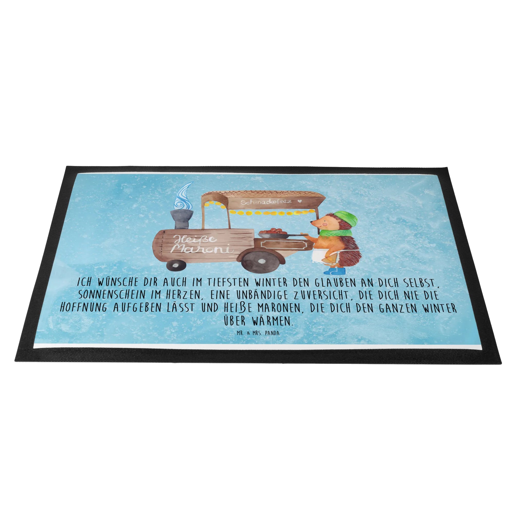 Die Fußmatte "Igel Maronen" von Mr. & Mrs. Panda ist das perfekte Geschenk für die kalte Winterzeit! Diese wunderschöne und hochfunktionale Fußmatte besticht durch ihr niedliches Design: Ein kleiner Igel mit blauen Stiefeln, einem grünen Schal und einer weißen Schürze, der vor seinem 'Heiße Maroni' Wagen steht. Nicht nur sieht sie toll aus, sie bringt auch eine herzliche Atmosphäre in dein Zuhause. Wenn du Gäste empfängst, wird diese Fußmatte garantiert für ein Lächeln sorgen!