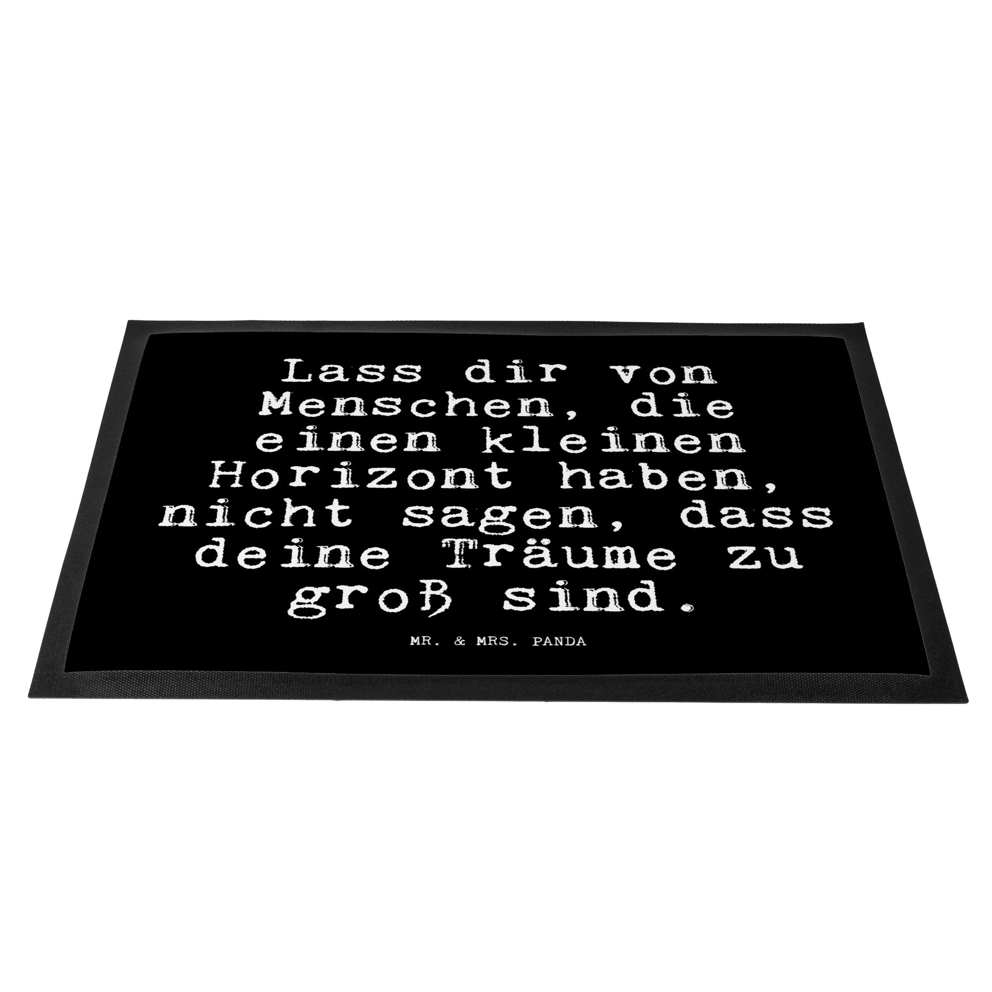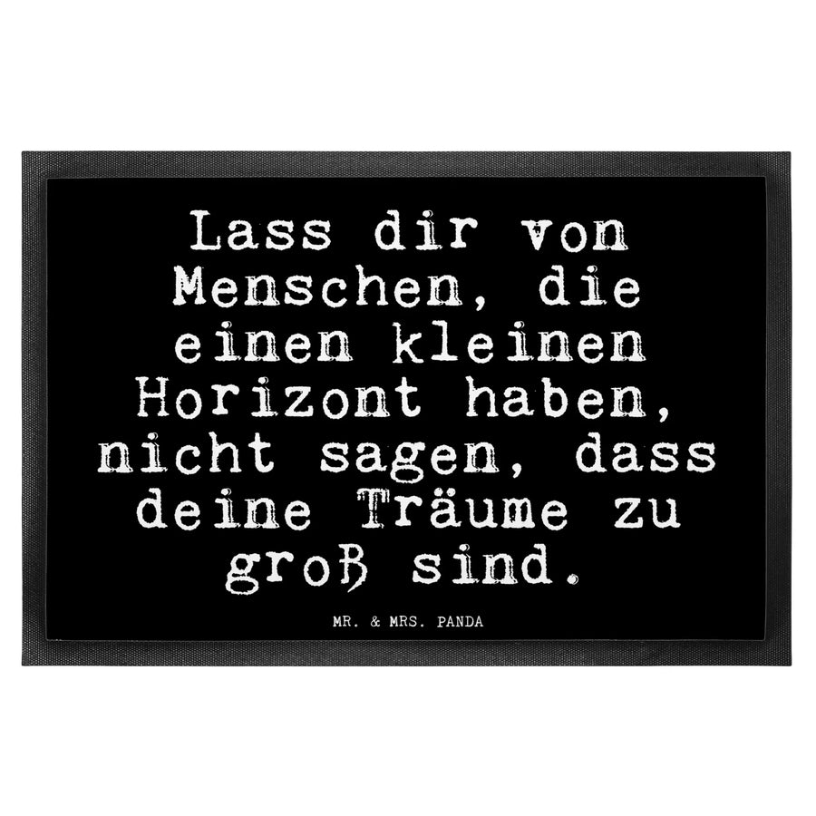 Die Fußmatte "Lass dir von Menschen, die einen kleinen Horizont haben, nicht sagen, dass deine Träume zu groß sind." von Mr. & Mrs. Panda ist der perfekte Weg, um deinen Eingangsbereich mit einer inspirierenden Botschaft zu verschönern. Sie ist nicht nur ein toller Schmutzfänger, sondern auch ein echtes Statement.