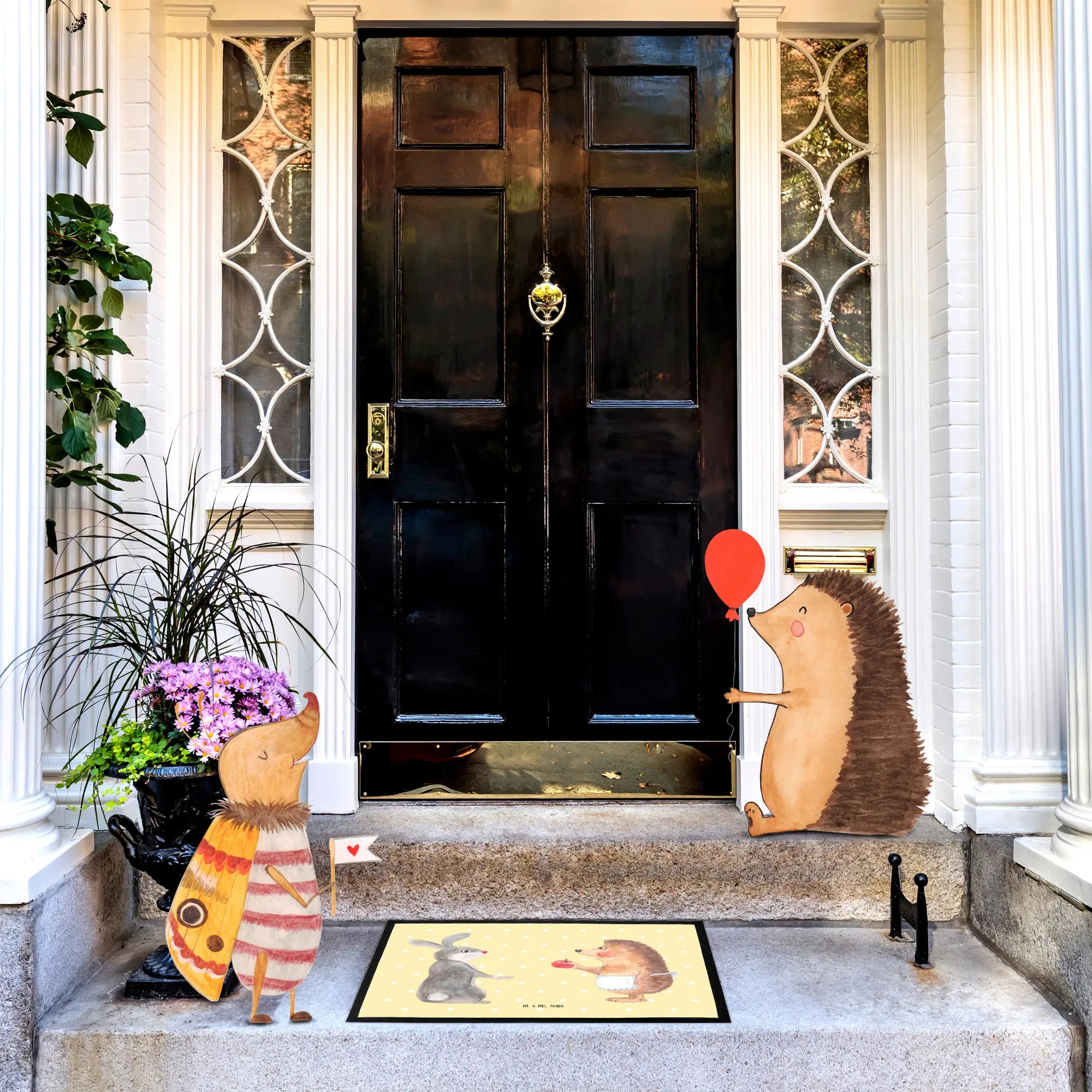 Fußmatte Hase Igel - 60 x 90 cm - mit Spruch - Gelb Pastell