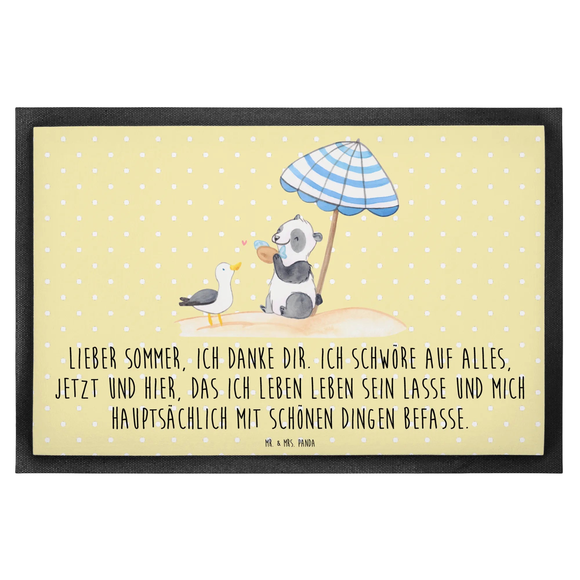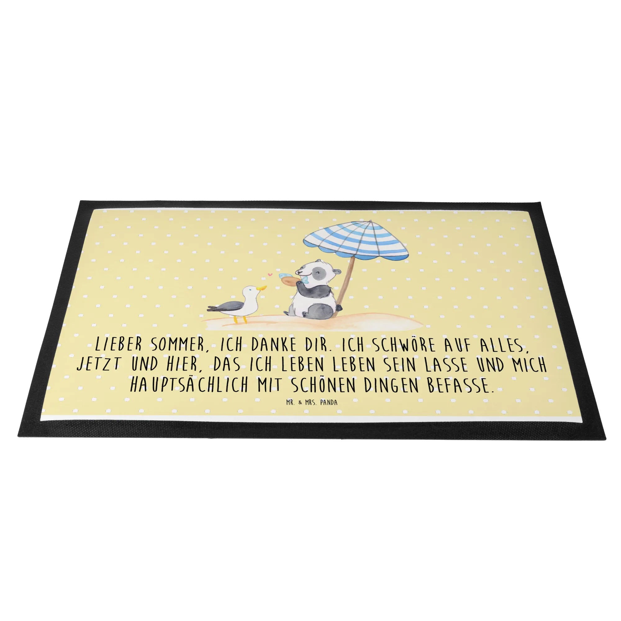 Entdecke die wunderbare Fußmatte "Sommer" von Mr. & Mrs. Panda! Diese Fußmatte bringt die Sonne direkt vor Deine Tür und versprüht fröhliche Sommer-Vibes. Mit dem liebevollen Slogan: "Lieber Sommer, ich danke dir. Ich schwöre auf alles, jetzt und hier, das ich Leben leben sein lasse und mich hauptsächlich mit schönen Dingen befasse." wird jeder Besucher gleich in gute Laune versetzt.
