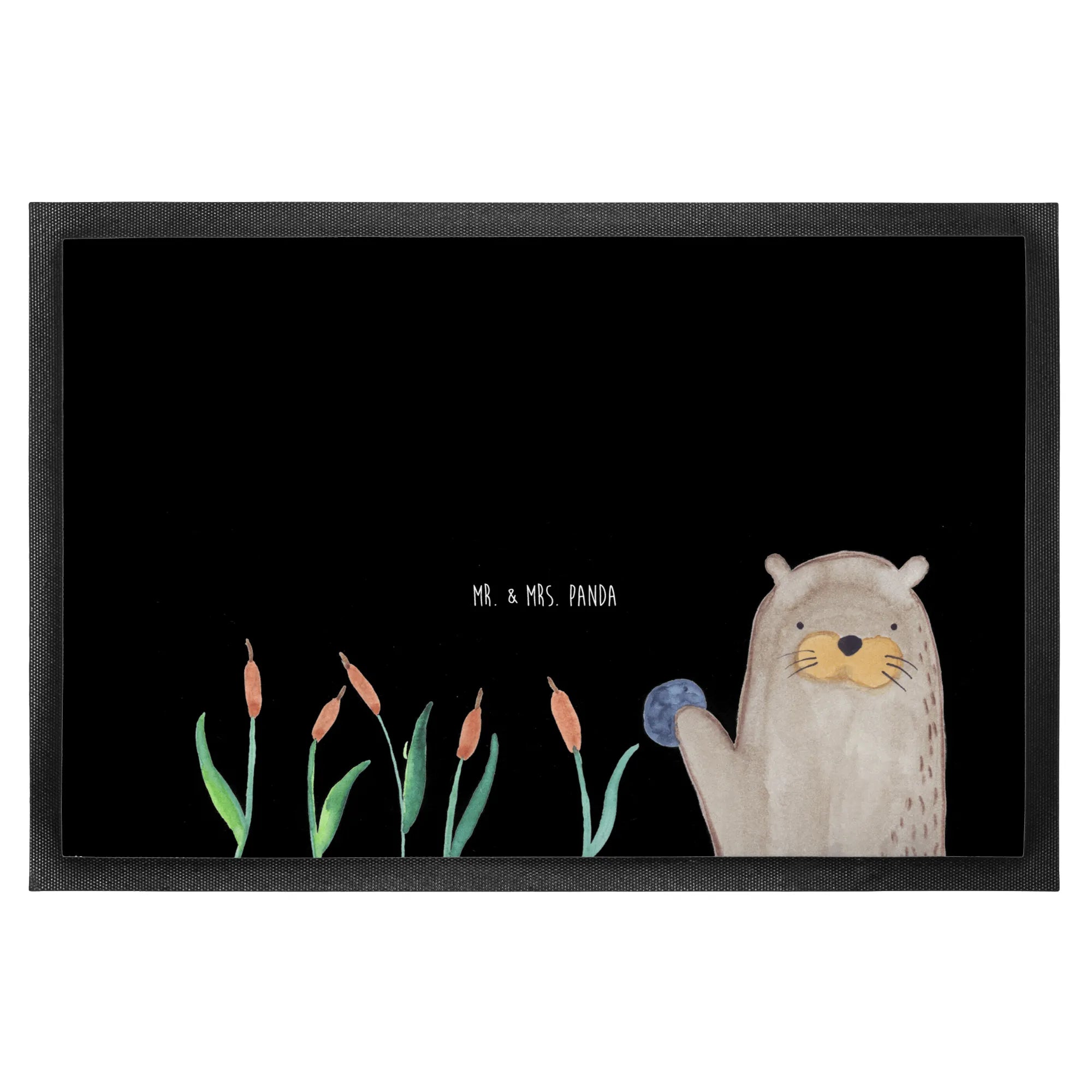 Die liebevoll gestaltete Fußmatte "Otter mit Stein" aus der Otter - Kollektion von Mr. & Mrs. Panda ist das perfekte Geschenk für alle, die Otter und einzigartige Wohnaccessoires lieben.