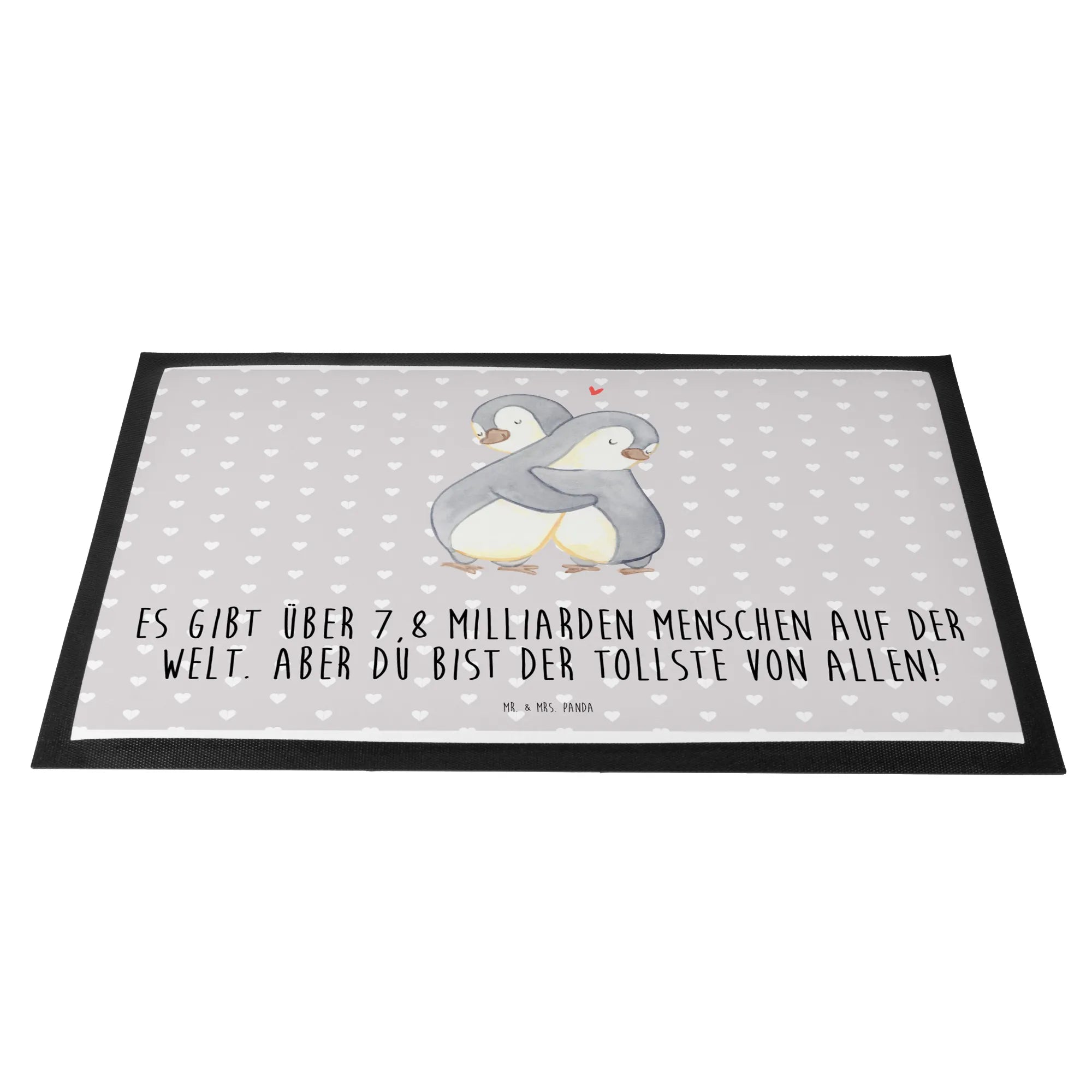Verschenke einen Hauch von Zuneigung mit dieser wunderschönen Schmutzfangmatte, die durch das süße Motiv von Pinguinen, die liebevoll umarmen, die Botschaft vermittelt: 'Es gibt über 7,8 Milliarden Menschen auf der Welt. Aber du bist der Tollste von allen!'