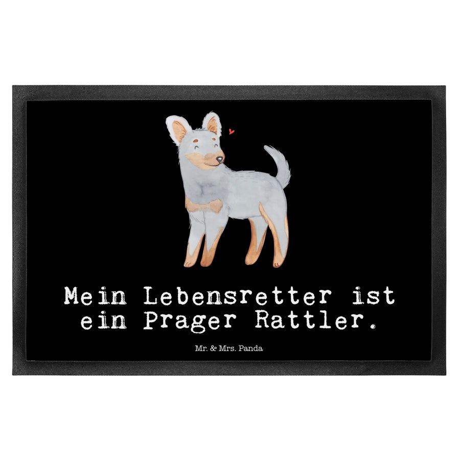 Entdecke die perfekte Fußmatte von Mr. & Mrs. Panda für alle Hundeliebhaber und besonders für die Besitzer des charmanten Prager Rattlers! Diese einzigartige Schmutzmatte trägt mit Stolz den Slogan „Mein Lebensretter ist ein Prager Rattler“ und begeistert jeden Besucher an Deiner Haustür.